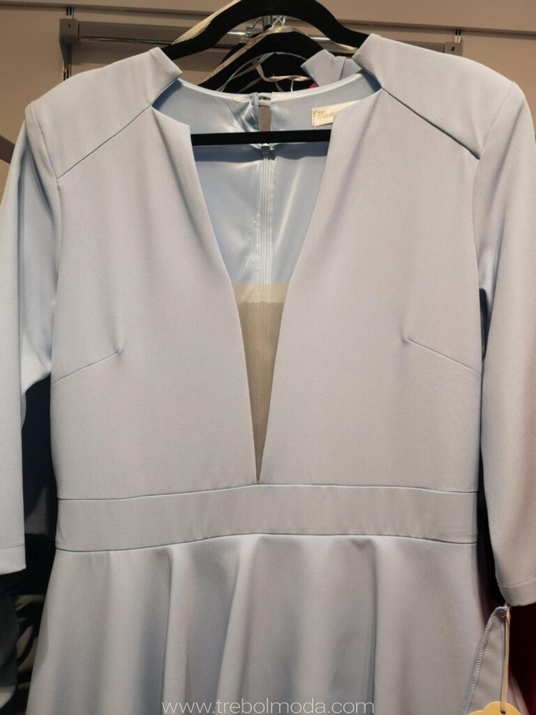Nos encanta el vestido con escote palabra de honor (reforzado con ballenas internas) y falda evasee.