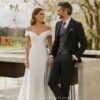 Traje en tonalidad verde jade.