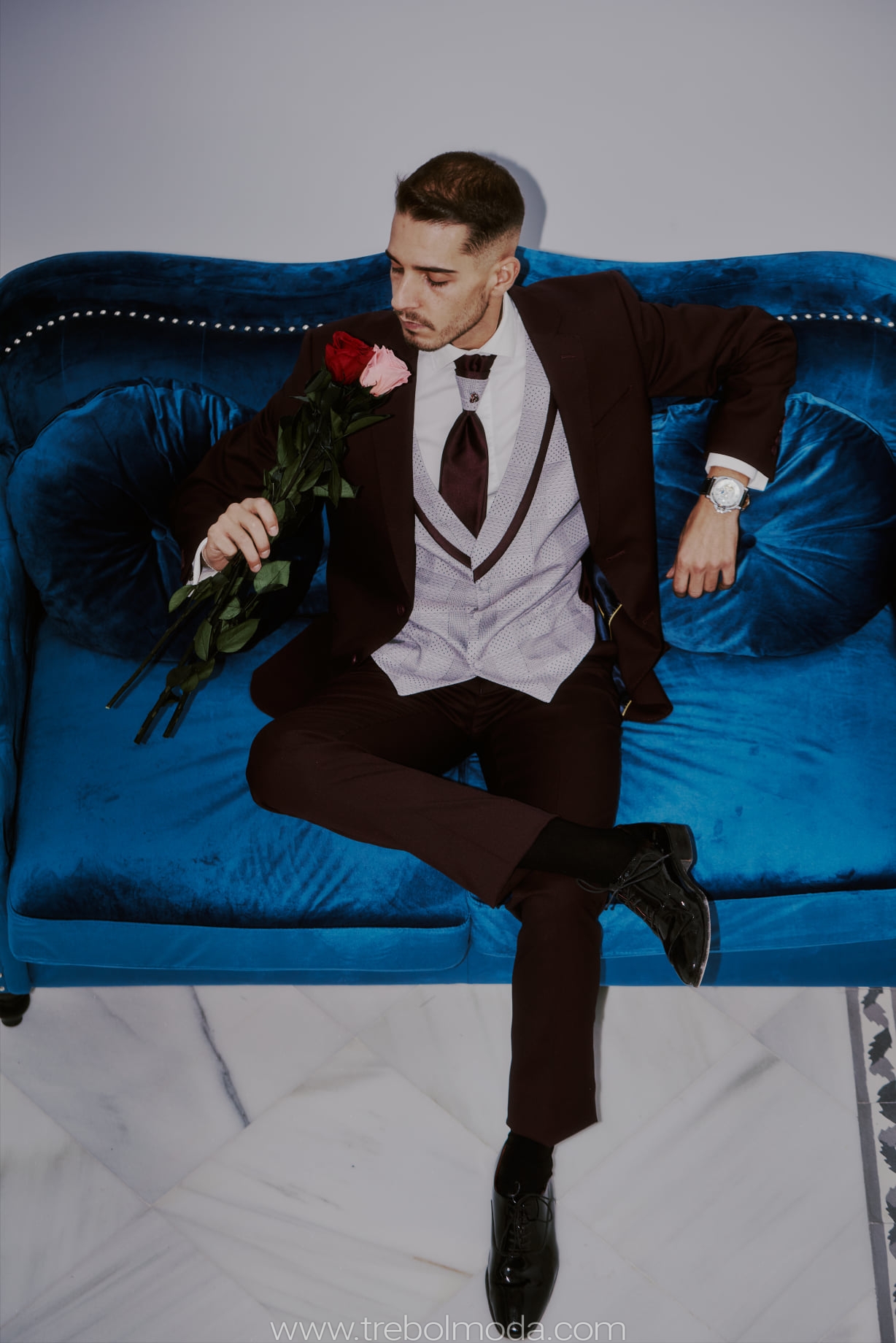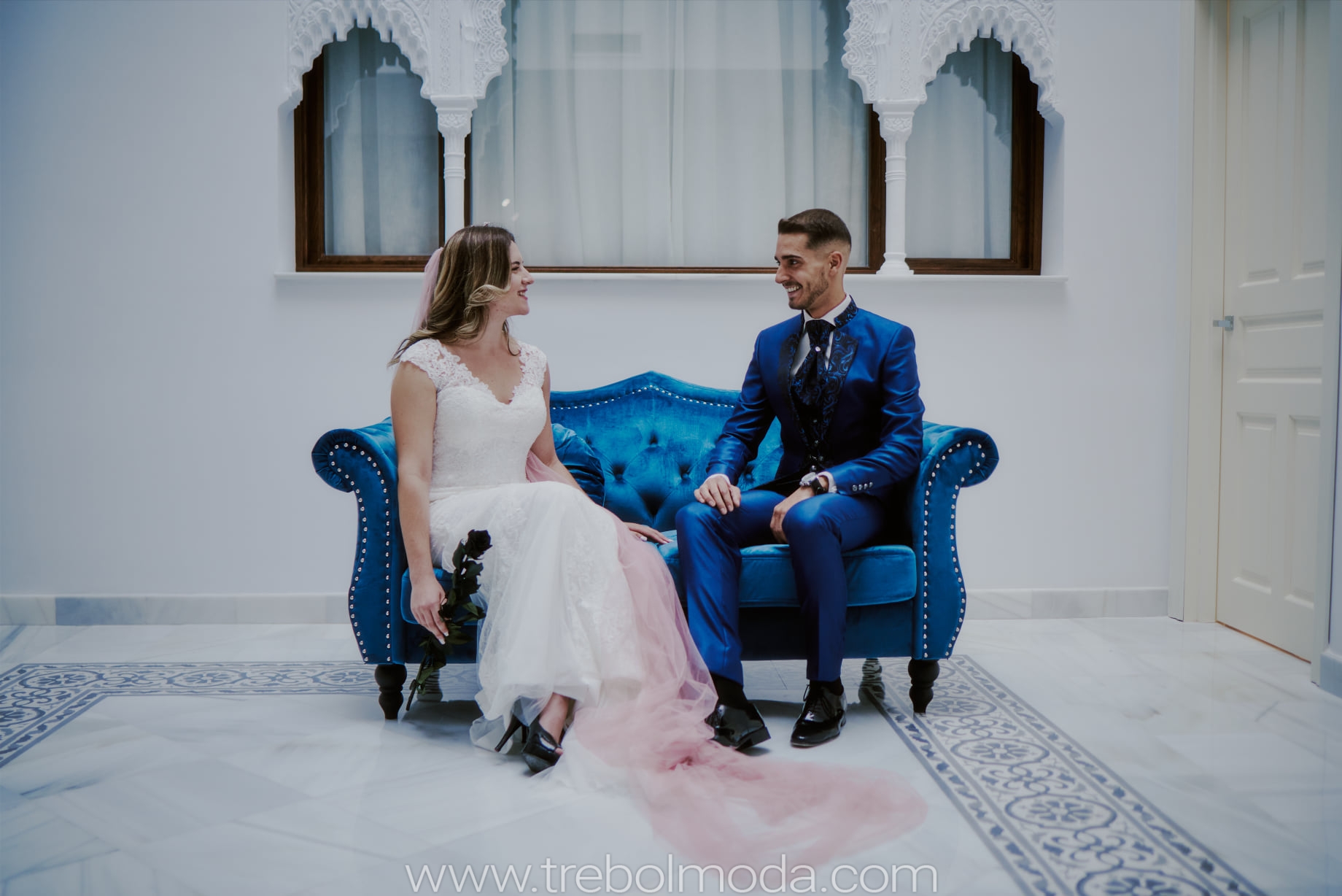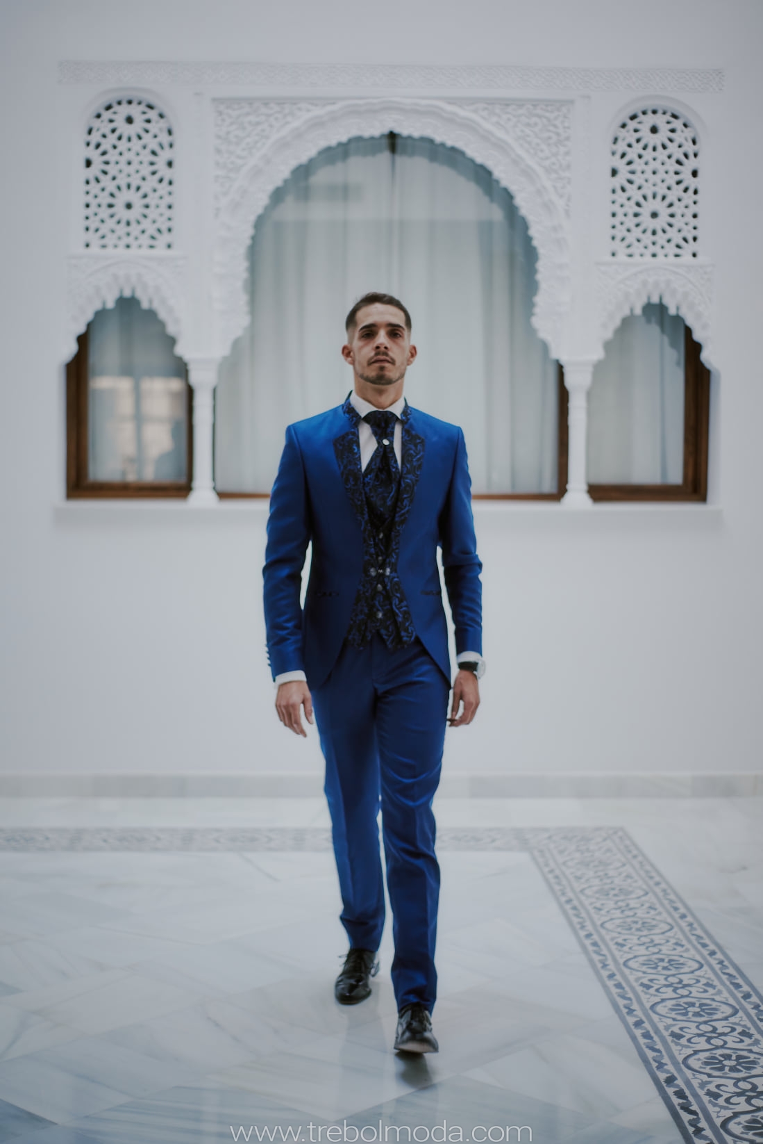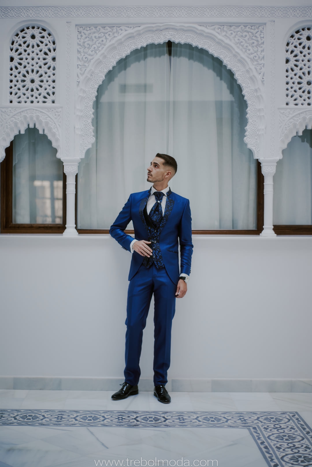 Los novios de hoy en día han dejado de ir con trajes negros sobrios y prefieren apostar por la nueva tendencia: el azul. Un color lleno de luz y vitalidad. ¡100% Acierto!