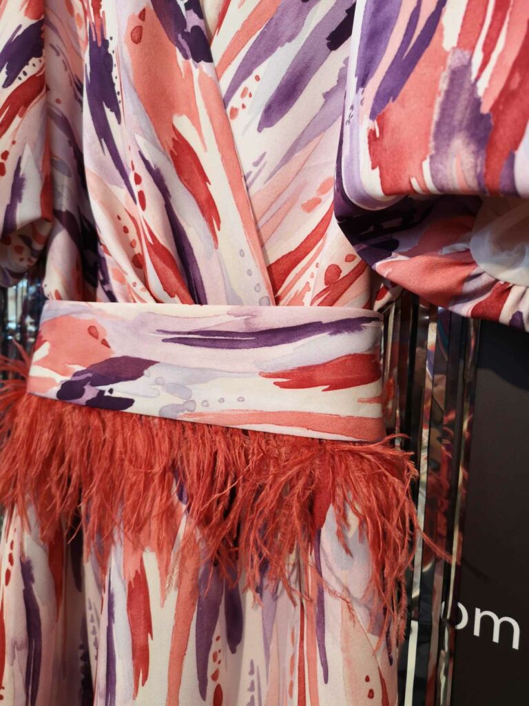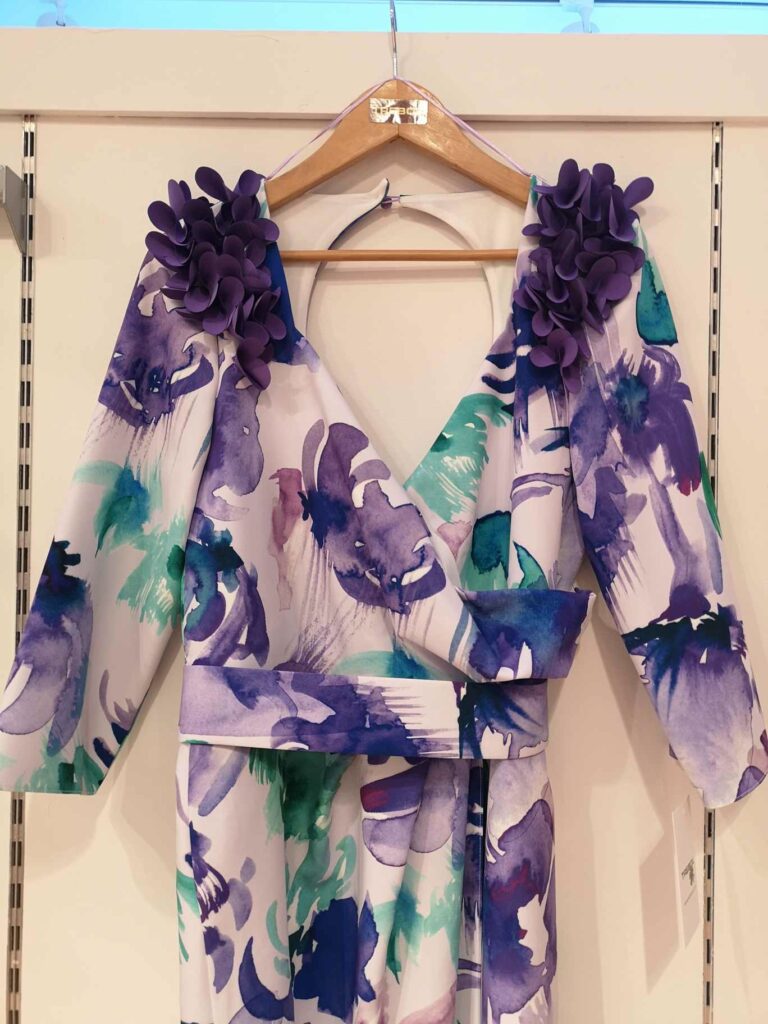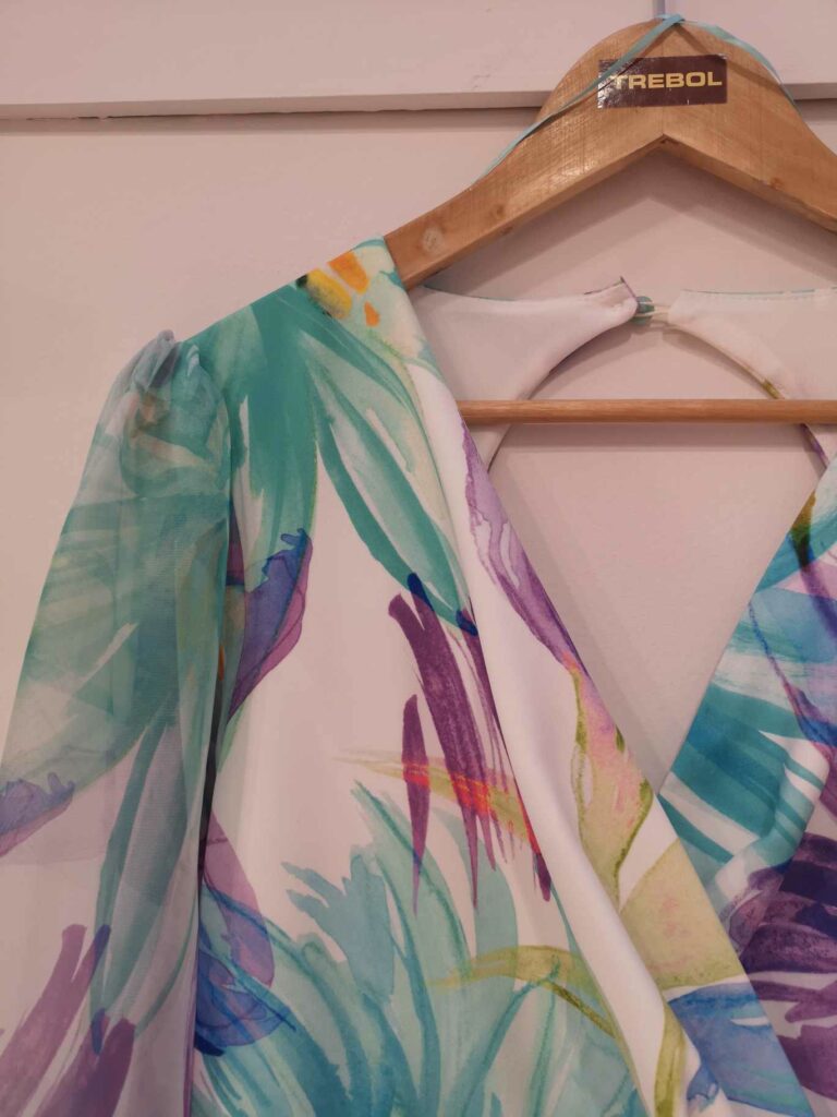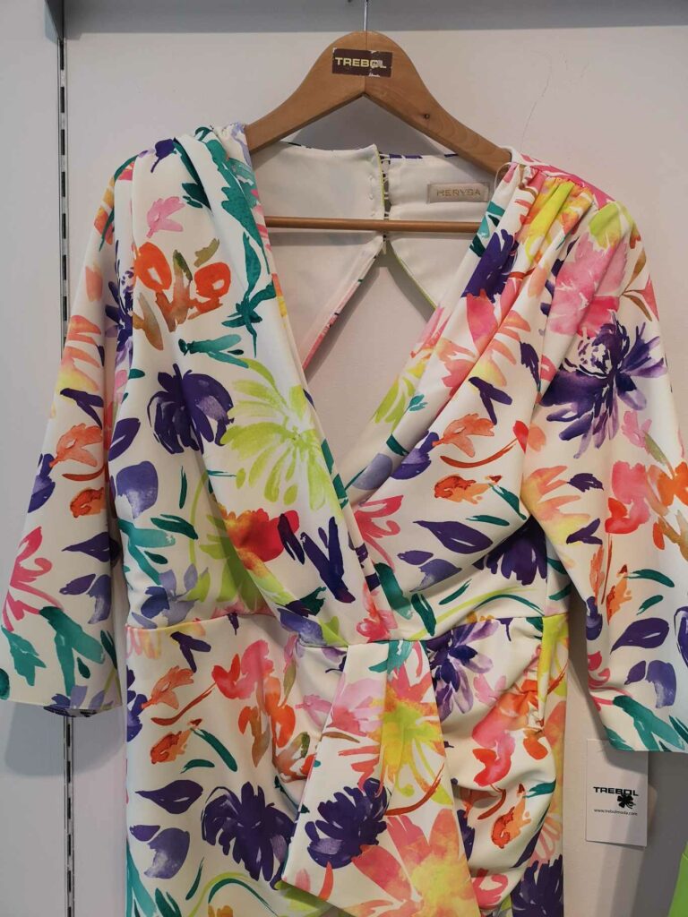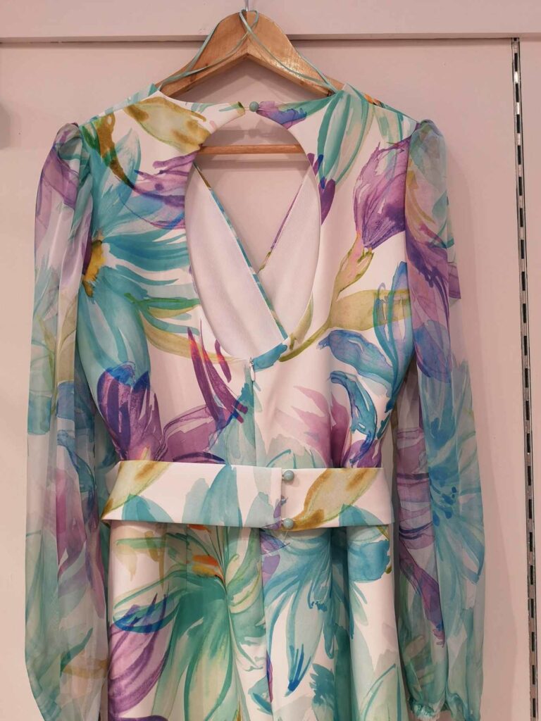 - Estampados Florales y Botánicos: Los estampados de flores, hojas y ramas en colores vibrantes o en tonos más suaves son un clásico para las bodas de mañana y evocan la naturaleza.