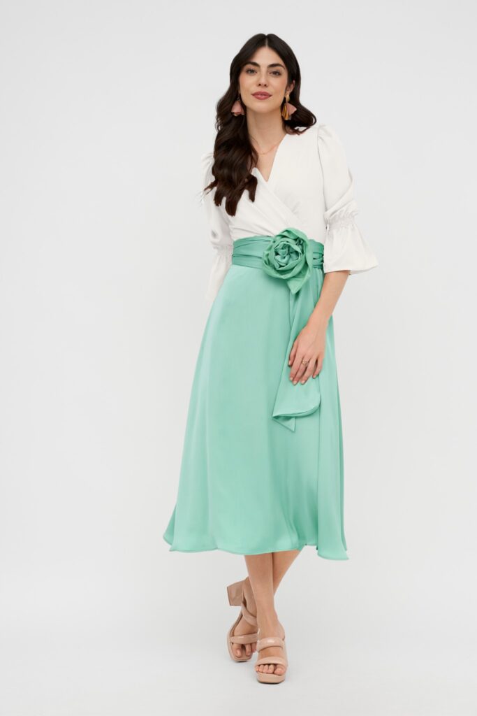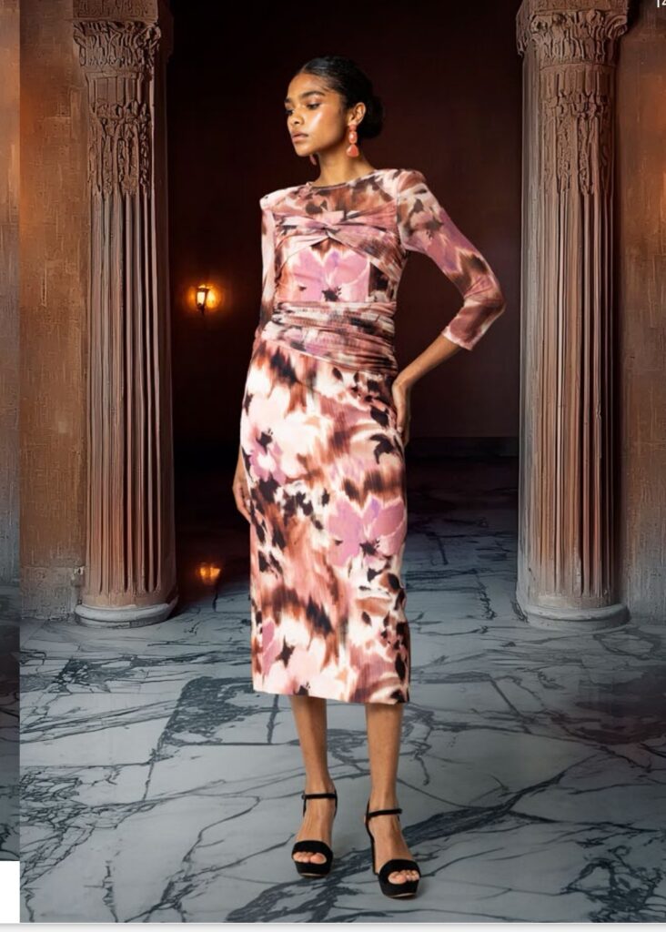 - Vestidos Midi con Estampados Florales: Los vestidos midi son una apuesta segura para una boda de mañana. Los estampados florales, en tonos alegres y vibrantes o en versiones más delicadas, encajan a la perfección con la luz del día y aportan un toque romántico.