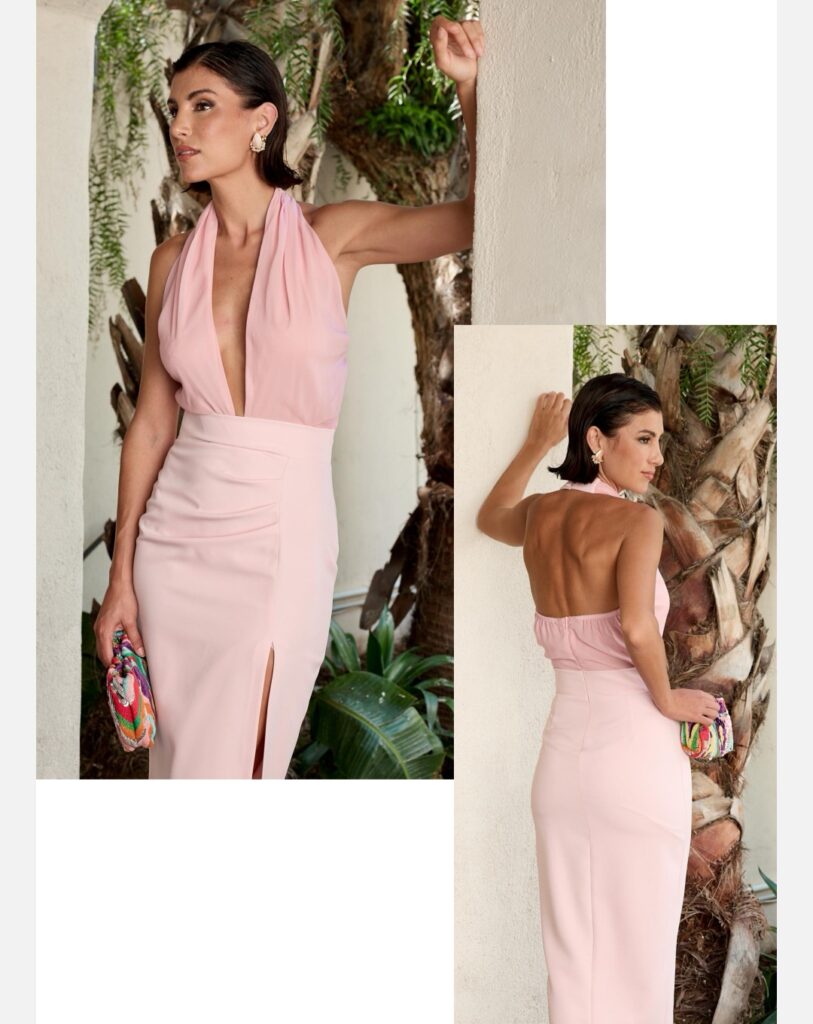- Vestidos Cortos y Coquetos: Los vestidos cortos de cóctel, justo por encima o por debajo de la rodilla, son una opción fresca y elegante. Optad por tejidos ligeros y fluidos como el lino, el algodón o la seda.