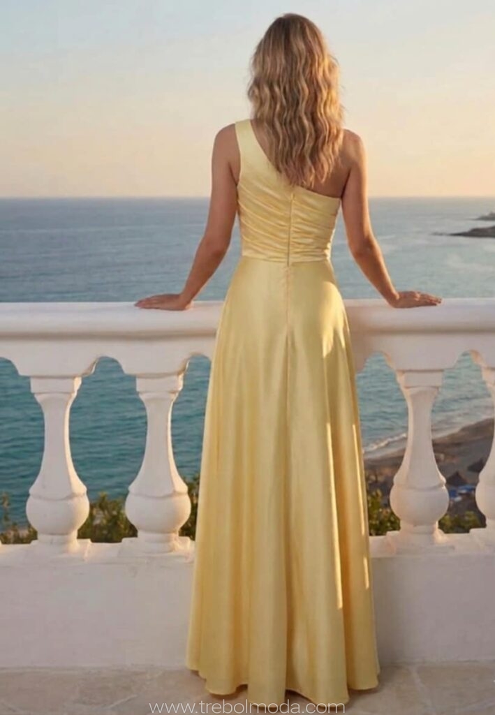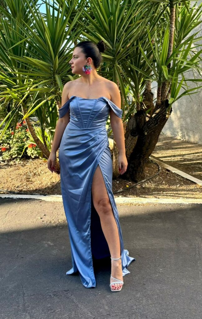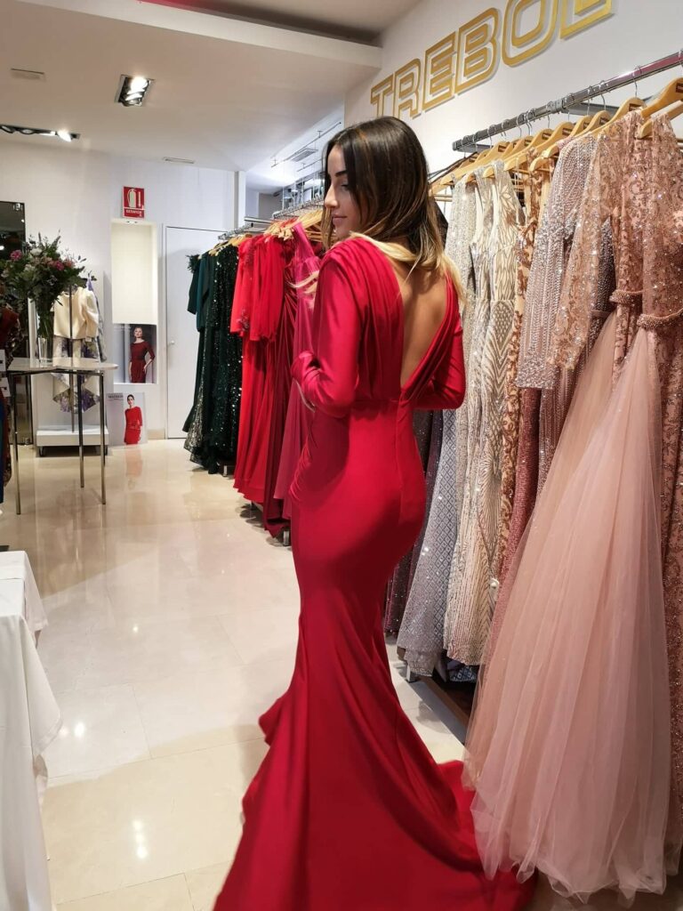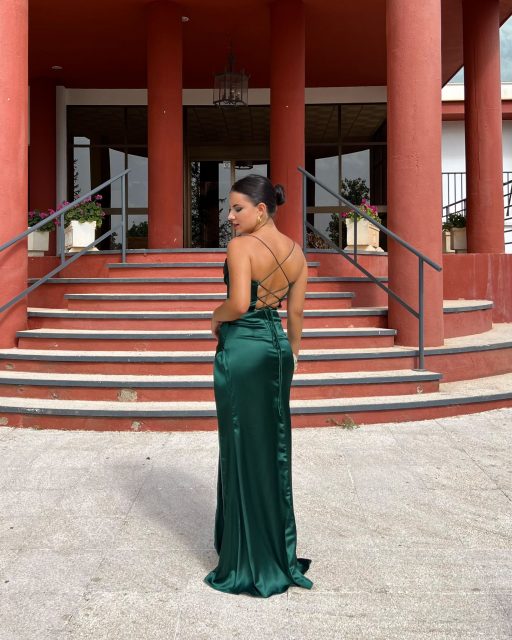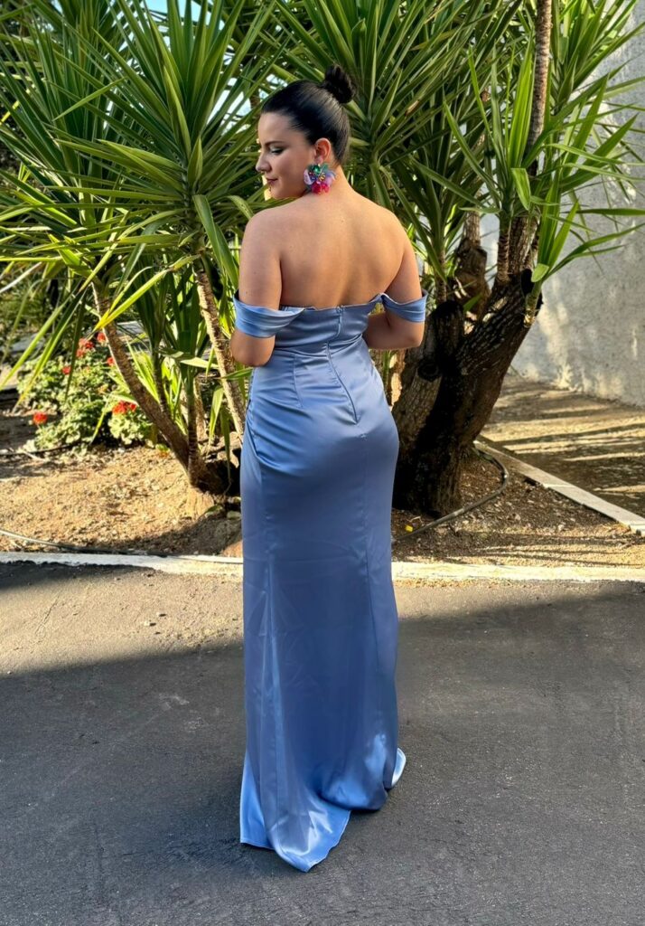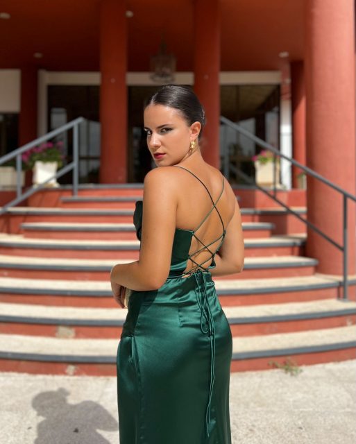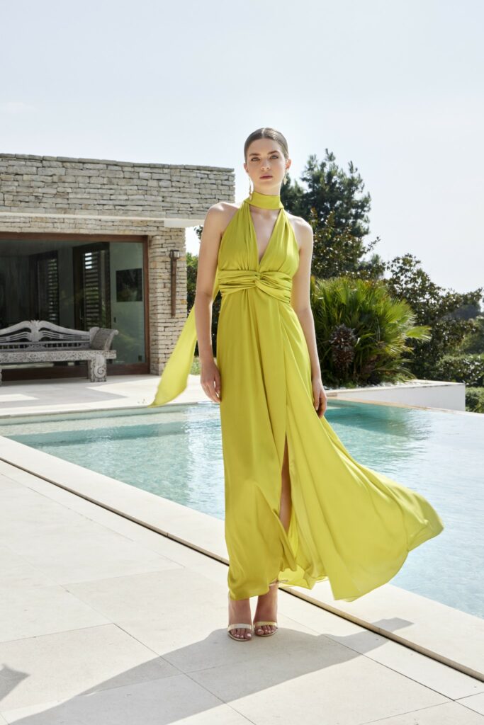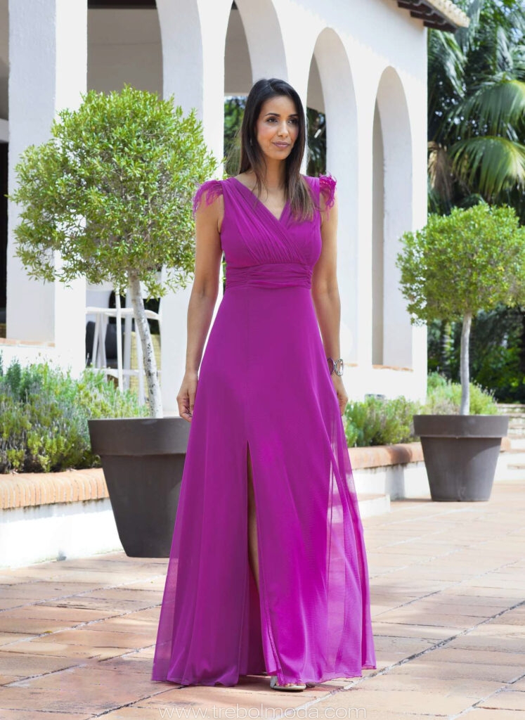- Vestidos largos y fluidos: Un clásico que nunca falla. Los vestidos largos de fiesta en tejidos como la gasa, el crepe o el satén son perfectos para una boda de tarde. Optad por siluetas que favorezcan vuestra figura, como los cortes imperio, en A o los vestidos con caída.