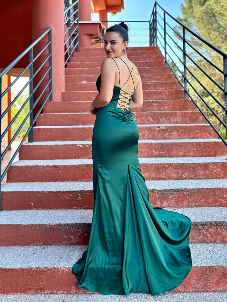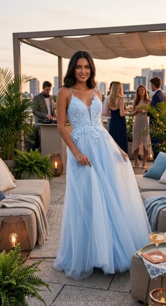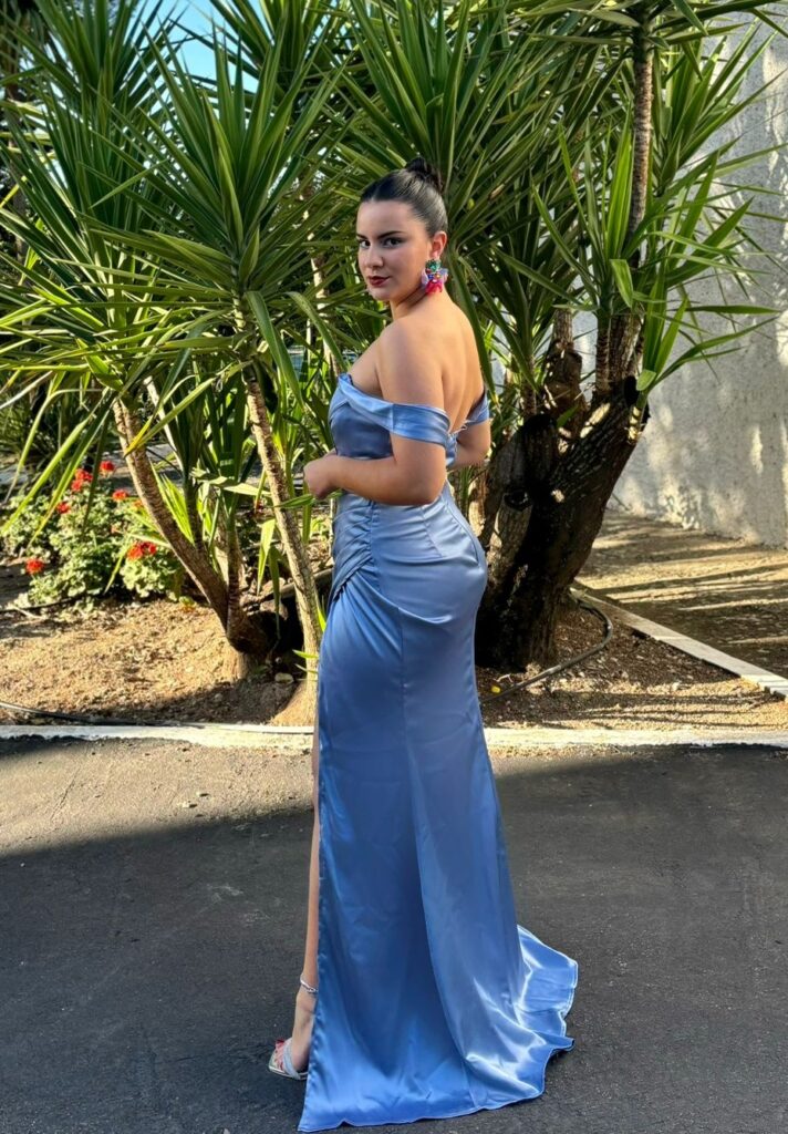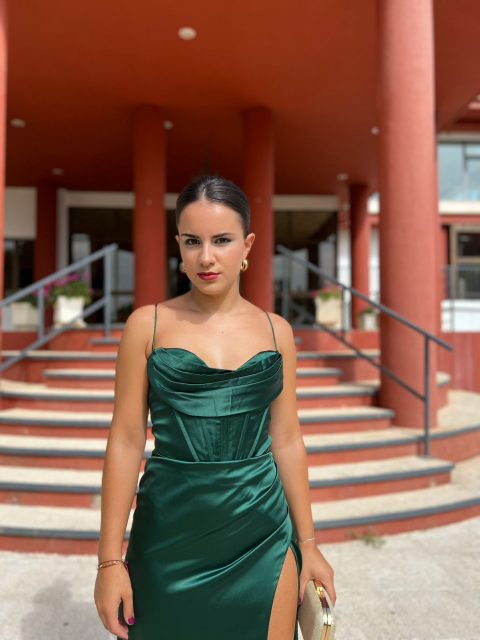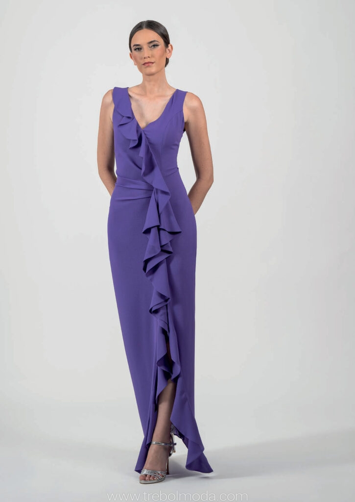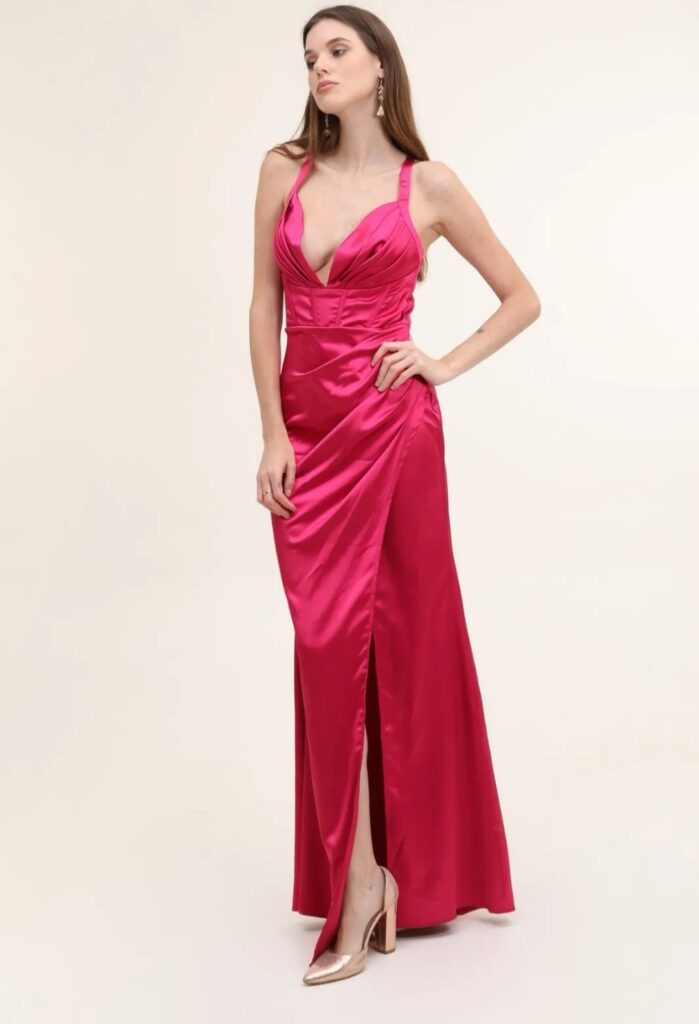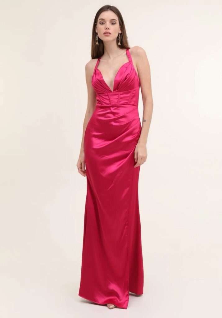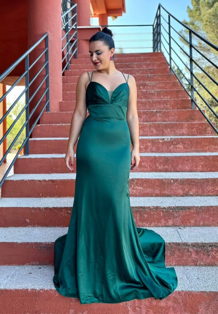 - Vestidos largos y fluidos: Un clásico que nunca falla. Los vestidos largos de fiesta en tejidos como la gasa, el crepe o el satén son perfectos para una boda de tarde. Optad por siluetas que favorezcan vuestra figura, como los cortes imperio, en A o los vestidos con caída.