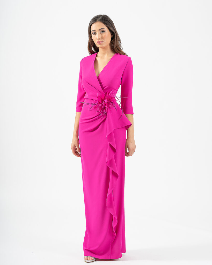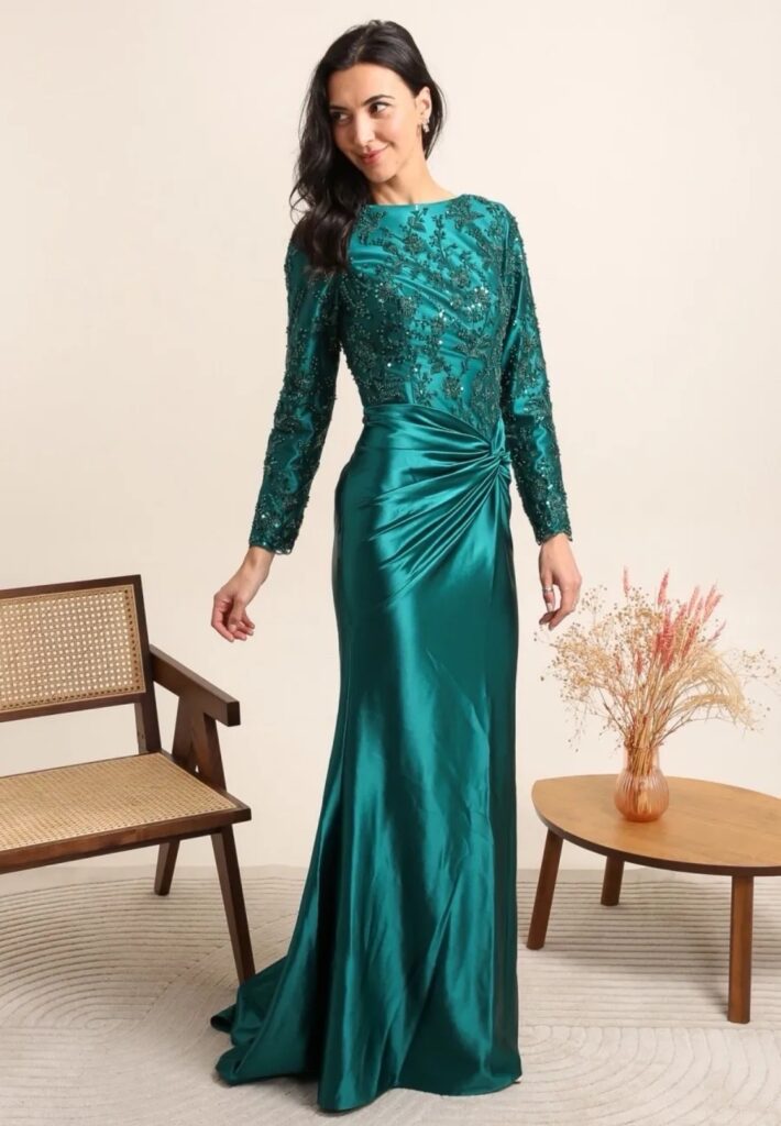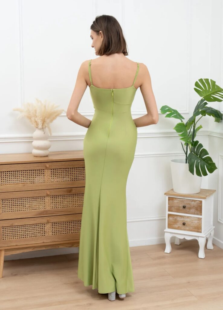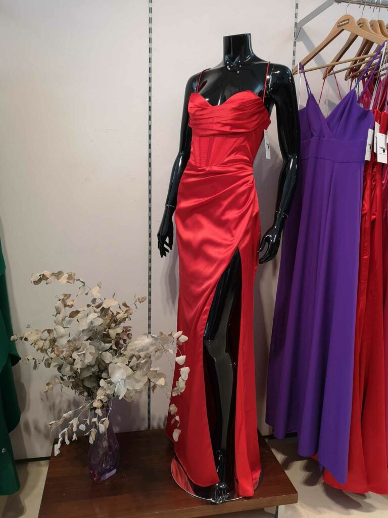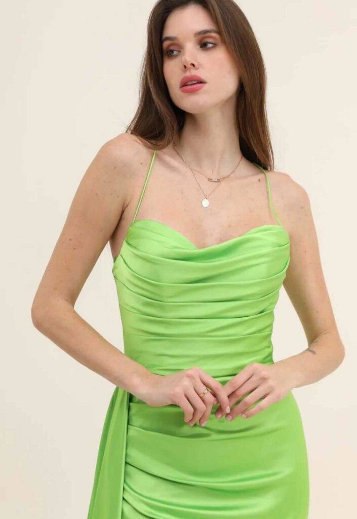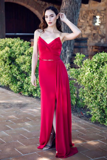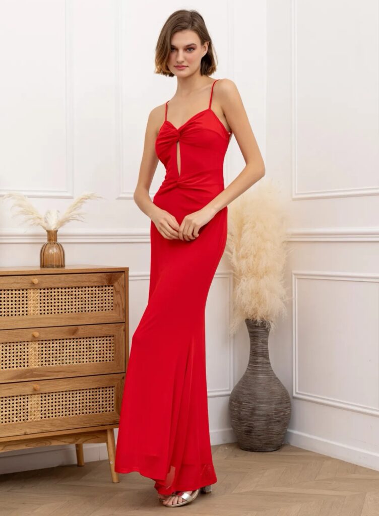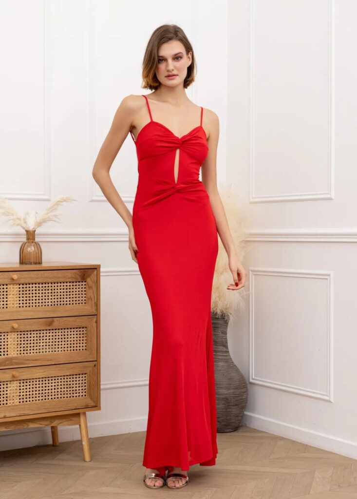 - Vestidos largos y fluidos: Un clásico que nunca falla. Los vestidos largos de fiesta en tejidos como la gasa, el crepe o el satén son perfectos para una boda de tarde. Optad por siluetas que favorezcan vuestra figura, como los cortes imperio, en A o los vestidos con caída.