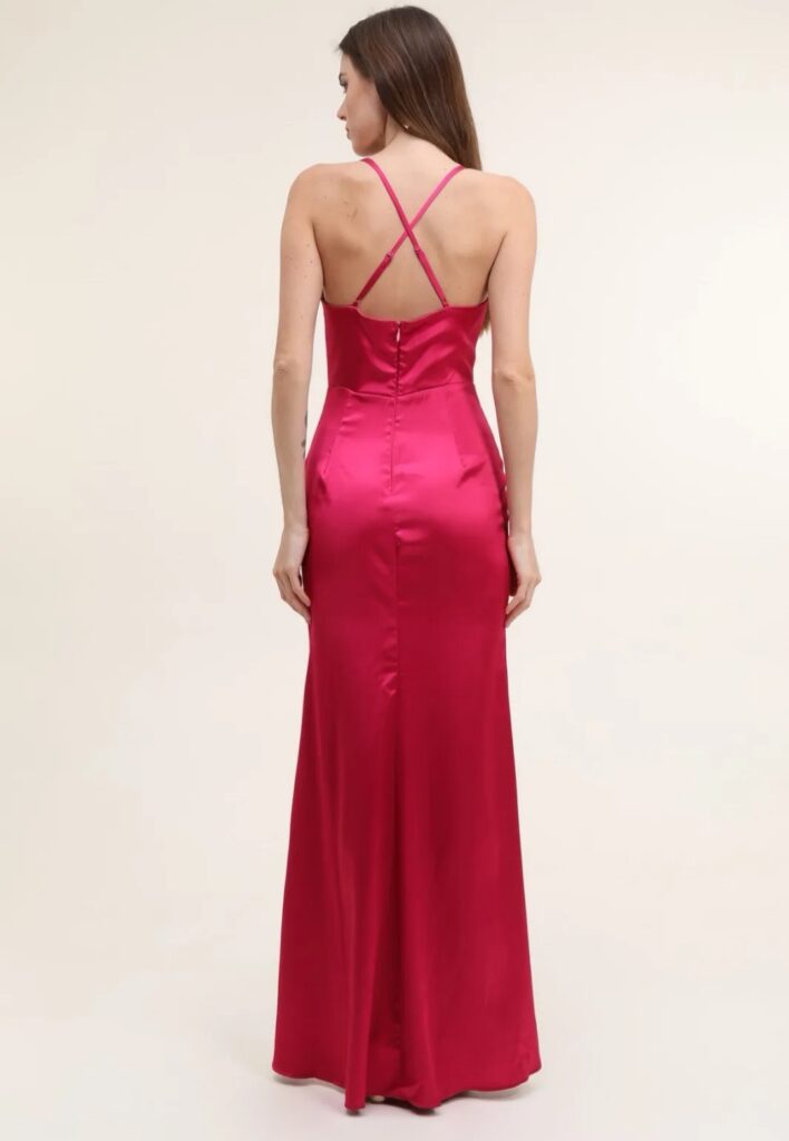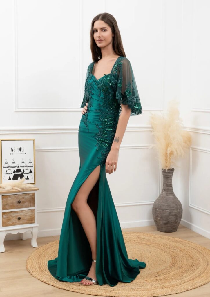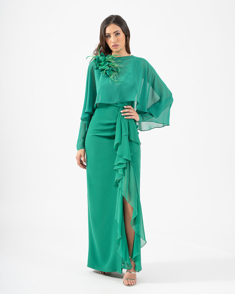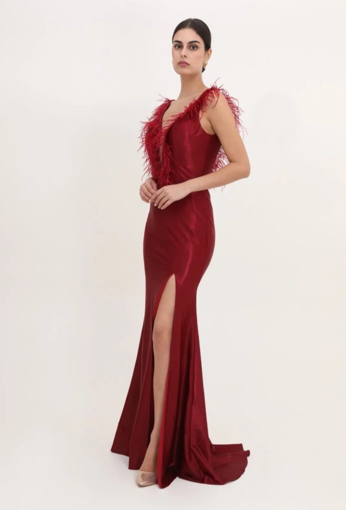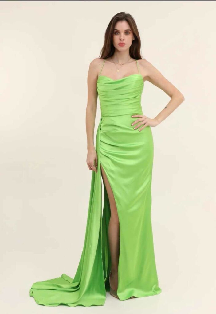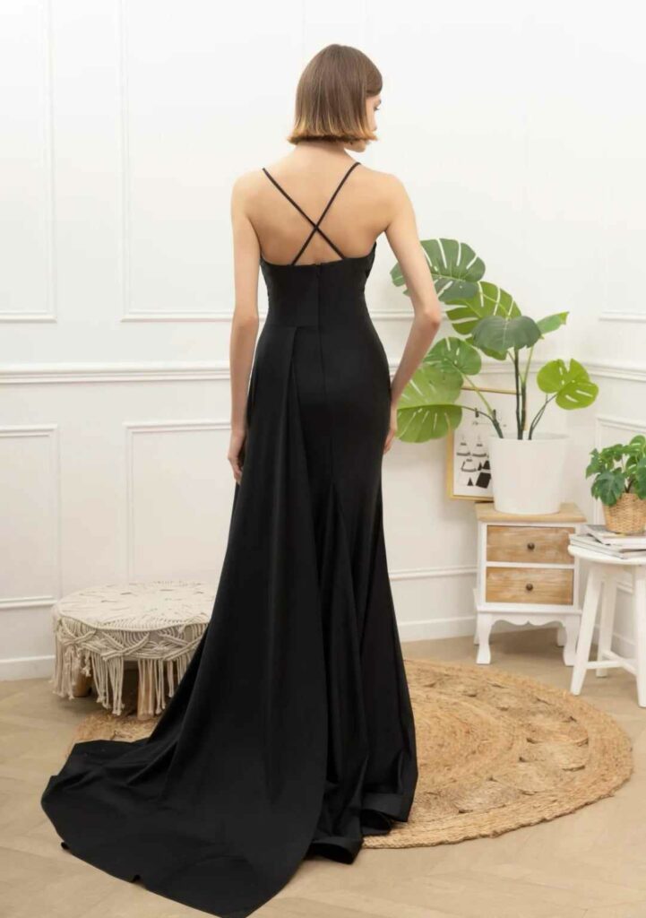 - Vestidos largos y fluidos: Un clásico que nunca falla. Los vestidos largos de fiesta en tejidos como la gasa, el crepe o el satén son perfectos para una boda de tarde. Optad por siluetas que favorezcan vuestra figura, como los cortes imperio, en A o los vestidos con caída.