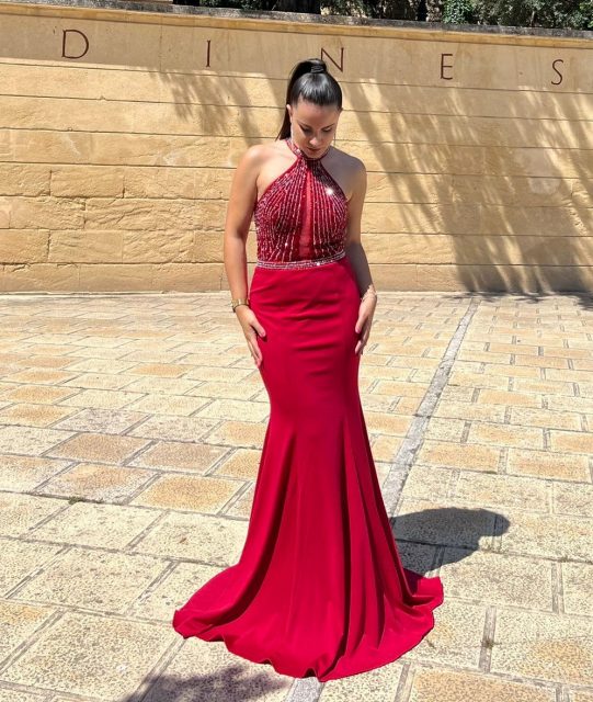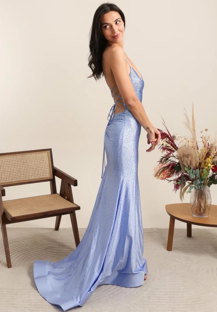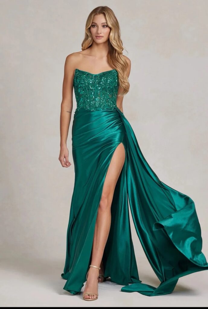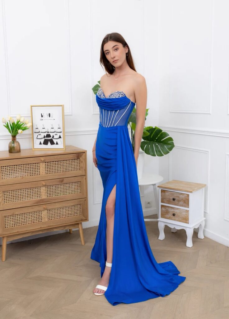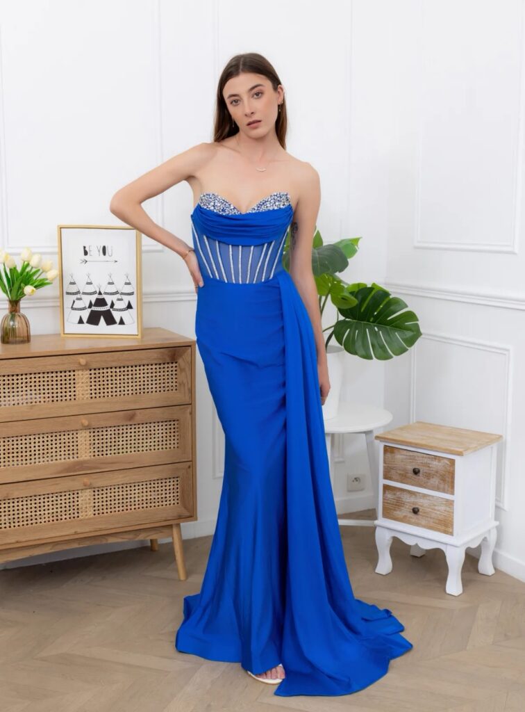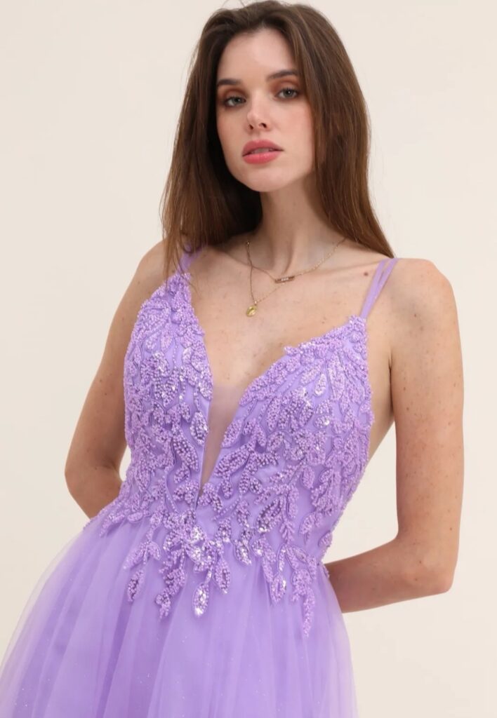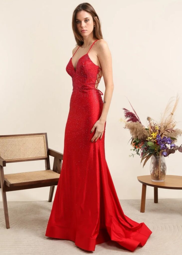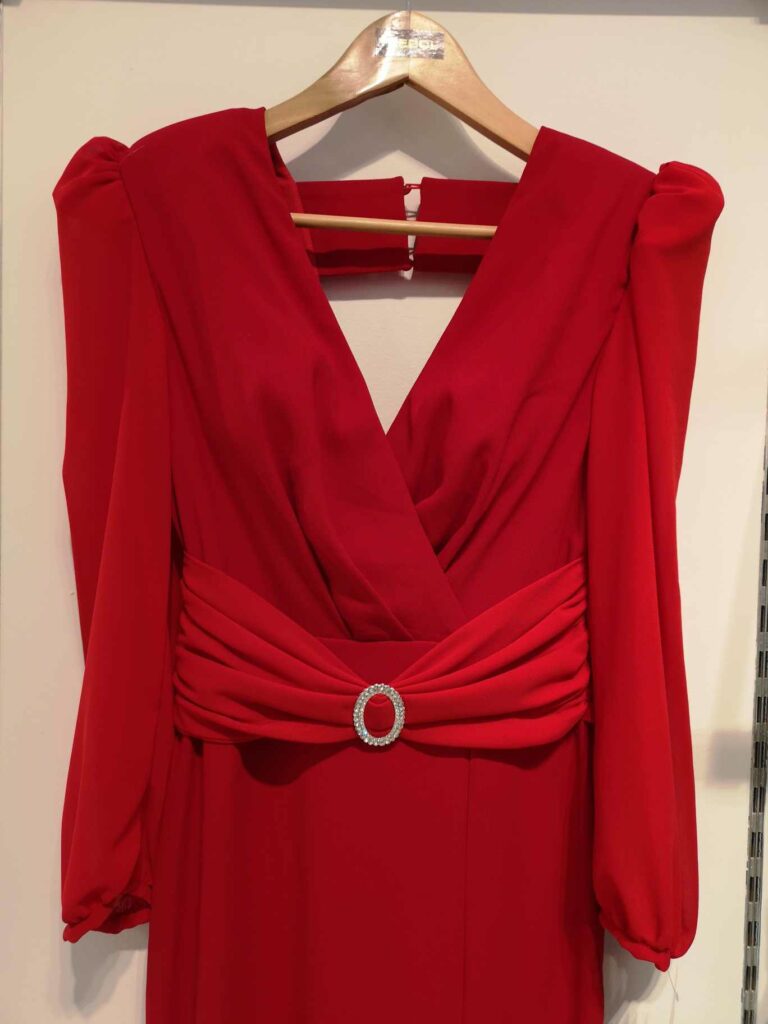 - Vestidos largos y fluidos: Un clásico que nunca falla. Los vestidos largos de fiesta en tejidos como la gasa, el crepe o el satén son perfectos para una boda de tarde. Optad por siluetas que favorezcan vuestra figura, como los cortes imperio, en A o los vestidos con caída.
