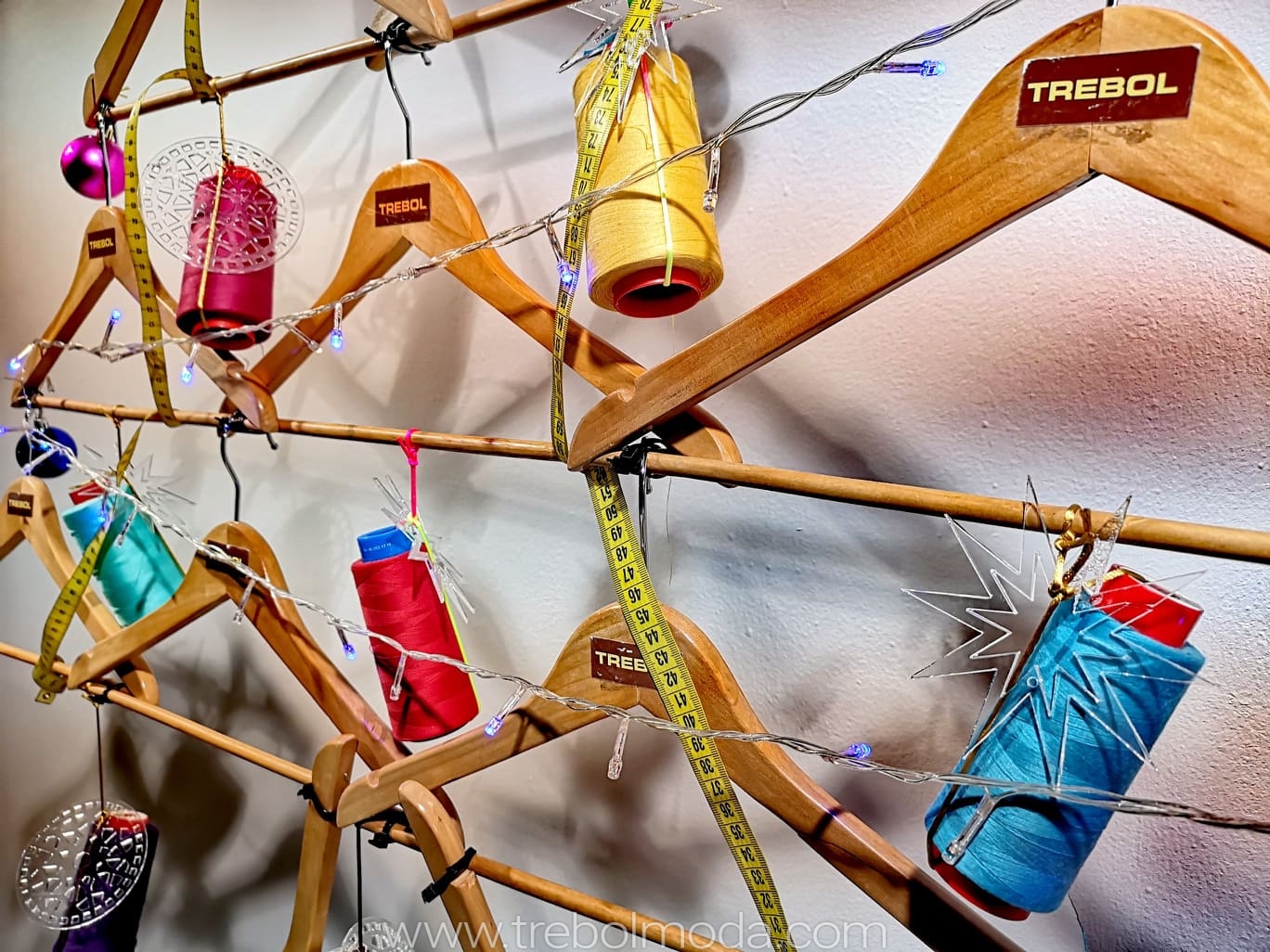 Se encargaron de hacer mascarillas y epi´s ( trajes de protección) con sus máquinas de coser, algunas profesionales y otras muchas domésticas, para donarlos gratuitamente a centros sanitarios. Este gesto tan hospitalario y generoso es digno de admiración y por eso este abeto recoge parte de esos útiles (conos de hilo y cintas métricas). ¡Va por ellos!