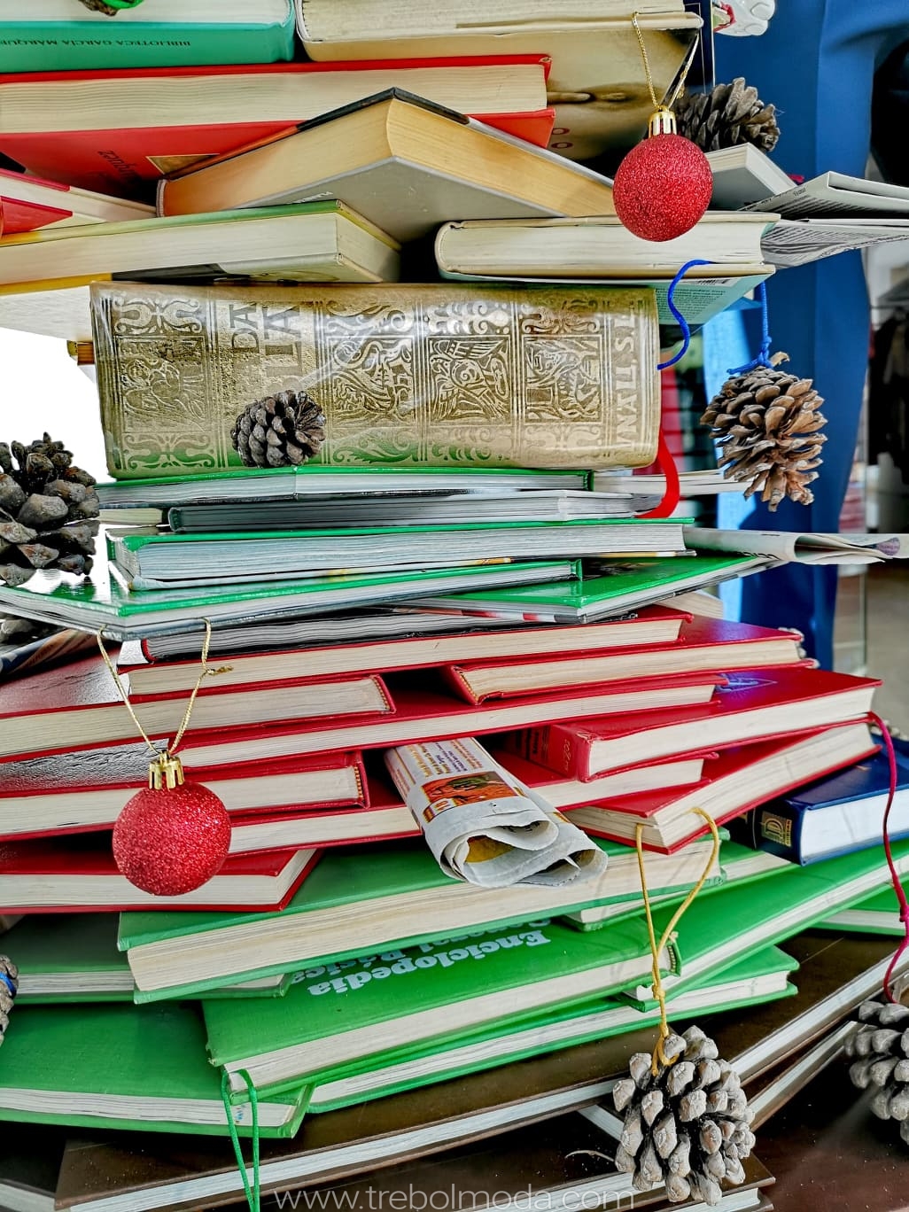 Este árbol “fabricado” con periódicos y libros está dedicado a ellos: Los periodistas. Profesionales que han estado al pie del cañón dándonos las noticias, informándonos sobre el estado de la “curva” y que han salido a la calle para poder narrarnos el día a día de la evolución de la pandemia.