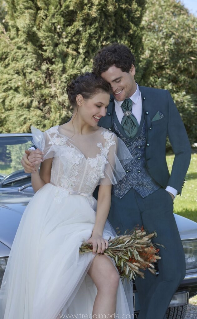 - Tonos Audaces: El novio de hoy no teme a los colores. El burdeos, el verde petróleo, el marrón chocolate y los azules intensos se abren camino, aportando un toque de distinción y personalidad.