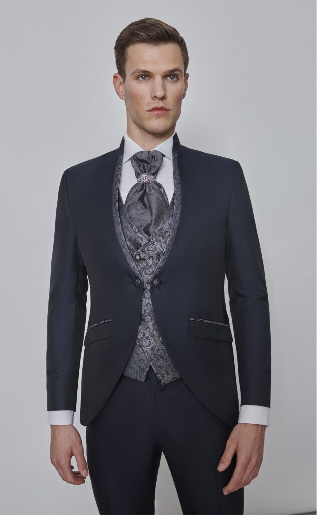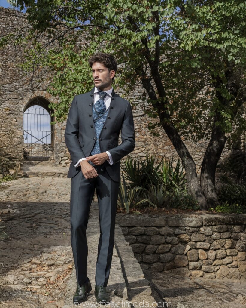 Y no olvidemos los detalles: las solapas (de pico, de muesca o chal) y los botones (forrados, de cuerno o metálicos) son clave para personalizar el look. Además, los accesorios como la corbata, la pajarita, el pañuelo y los gemelos son esenciales para completar el conjunto y expresar la personalidad del novio.