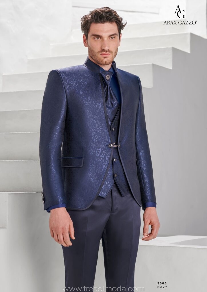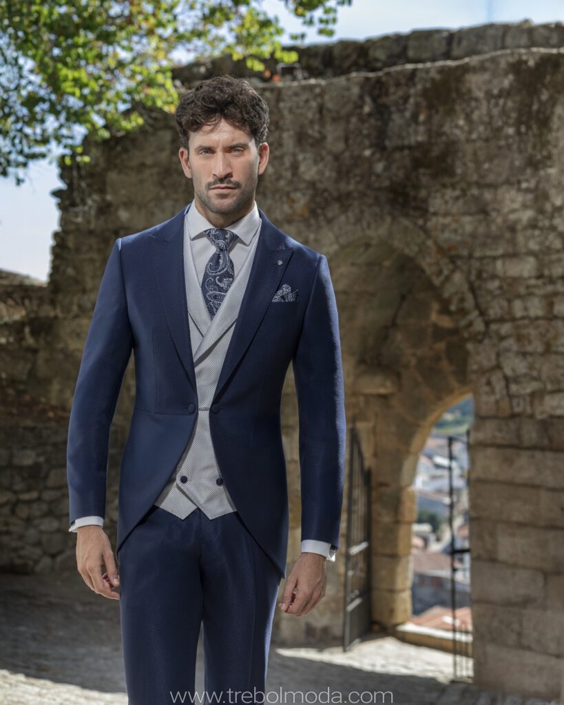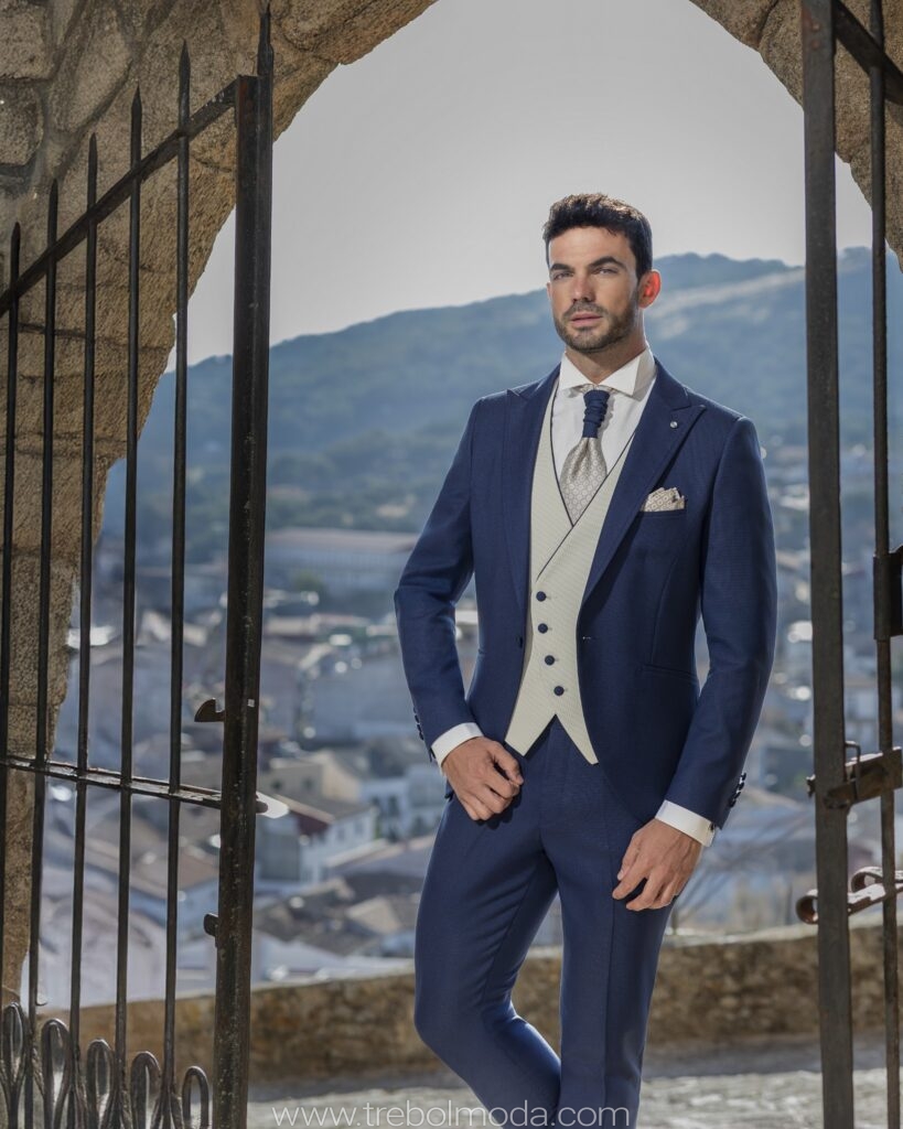 - Tejidos Naturales: La lana, el lino, el algodón y la seda son los preferidos por su caída, transpirabilidad y confort, garantizando que el novio se sienta cómodo durante toda la jornada.