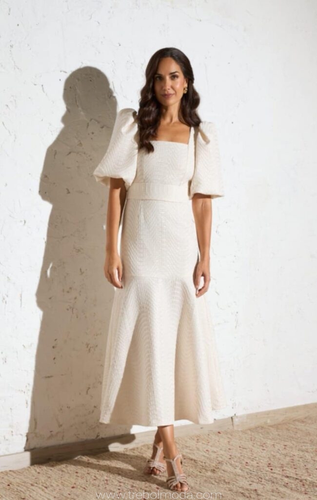• Estilos: Los vestidos midi y los vestidos por la rodilla son los más adecuados para una comunión. Los vestidos largos pueden ser demasiado formales, a menos que la celebración sea en un lugar muy elegante. Los vestidos con corte evasé, corte imperio o corte en A son muy favorecedores y se adaptan a diferentes tipos de cuerpo. También puedes optar por un vestido camisero o un vestido de estilo boho, que están muy de moda este año.