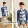 Una nueva propuesta para esta temporada son las chaquetas cruzadas hacia un lateral consiguiendo un outfit de comunión muy casual y moderno.