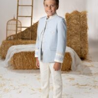 El pack se compone de camisa, pantalón, chaleco, chaqueta y corbata.