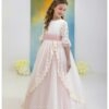 Incluye un cinturón rosa con lazada en la parte trasera, que realza la silueta y aporta un toque romántico y encantador para la ocasión especial.