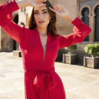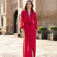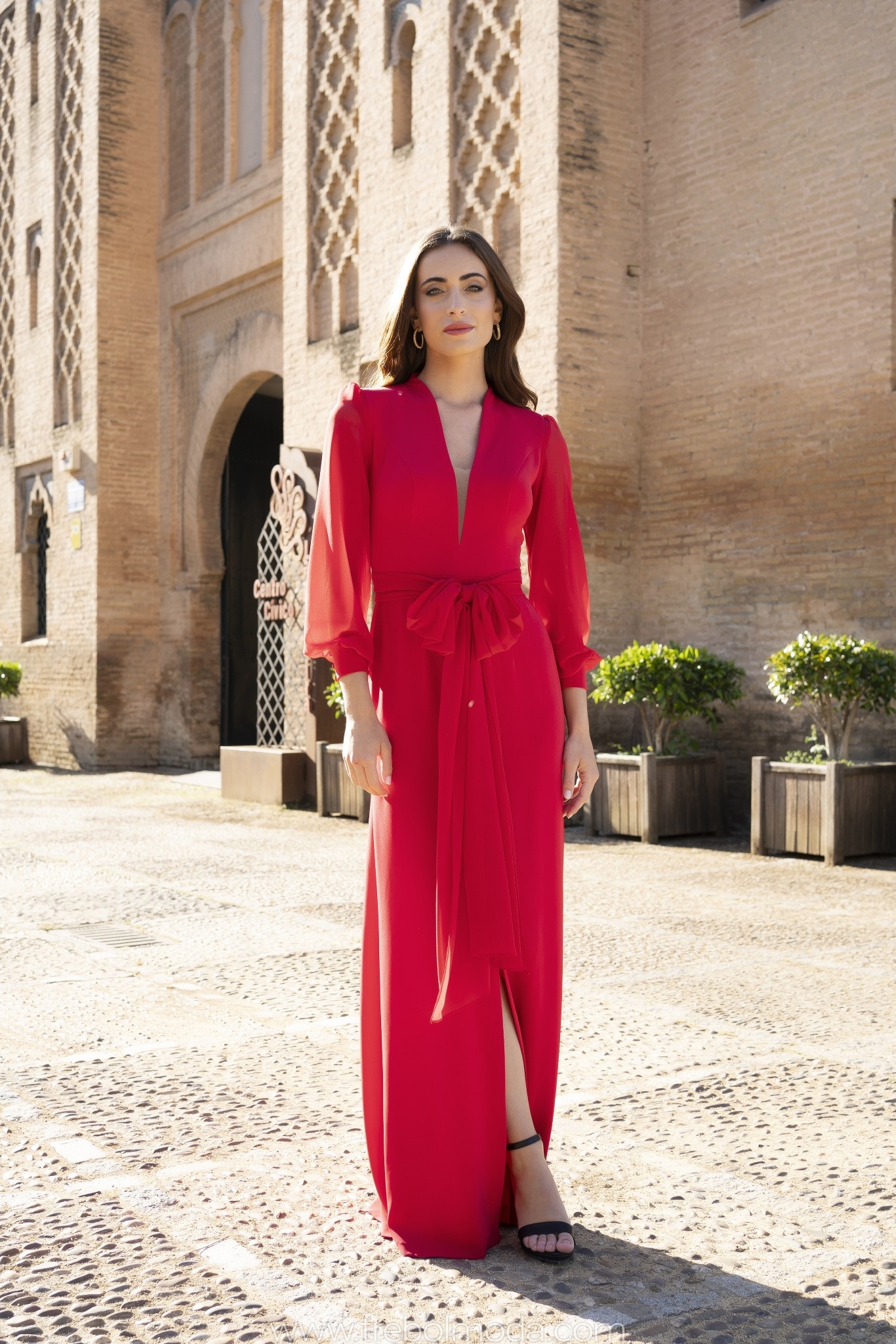 Etiquetas: boda, celebración, elegante, evento, fiesta, mangas largas, mujer, vestido largo rojo