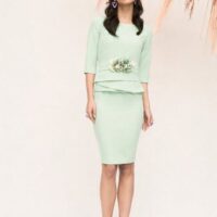 Falda recta con peplum en cintura (ideal para disimular “barriguita”).