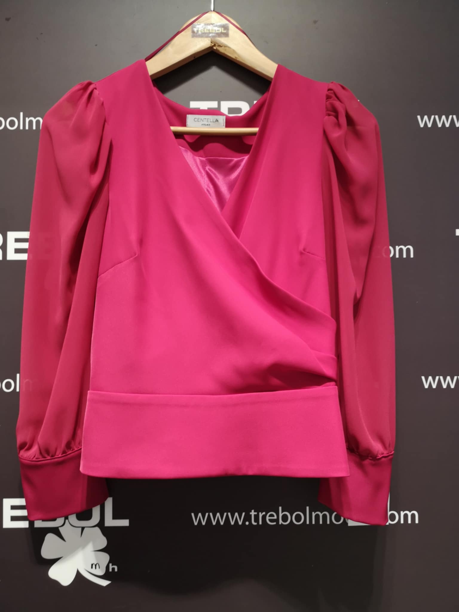 La blusa de manga larga en tejido contraste (mangas de gasa y cuerpo de crep)