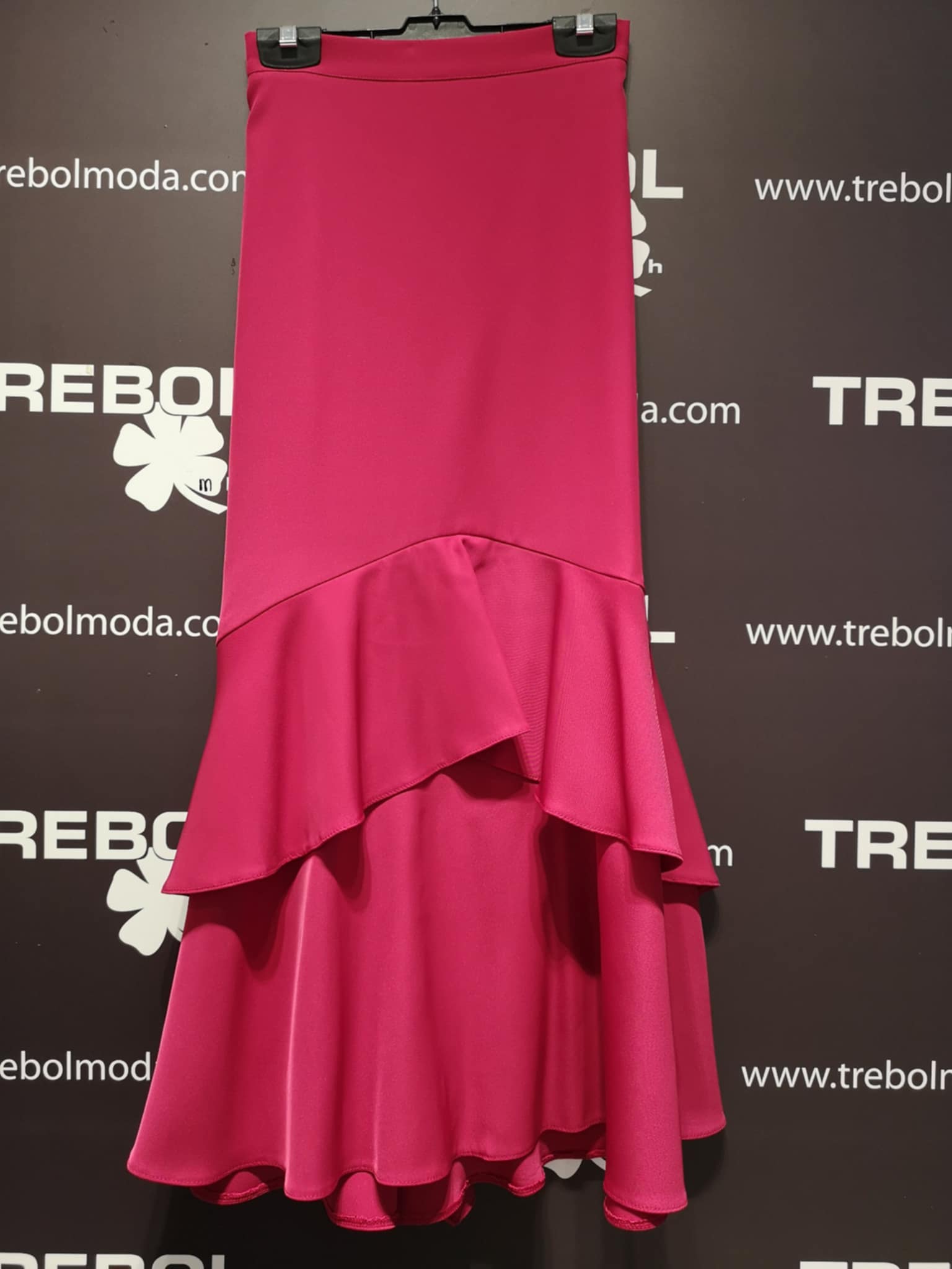 Falda midi con dos volantes asimétricos.
