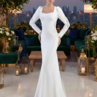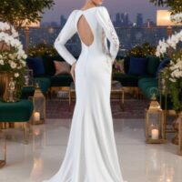 Vestido de novia de manga larga.