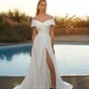 Nos encanta el vestido con escote palabra de honor (reforzado con ballenas internas) y falda evasee.