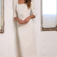 Destaca por su escote delantero en cuadrado y su espalda cerrada en cremallera invisible.