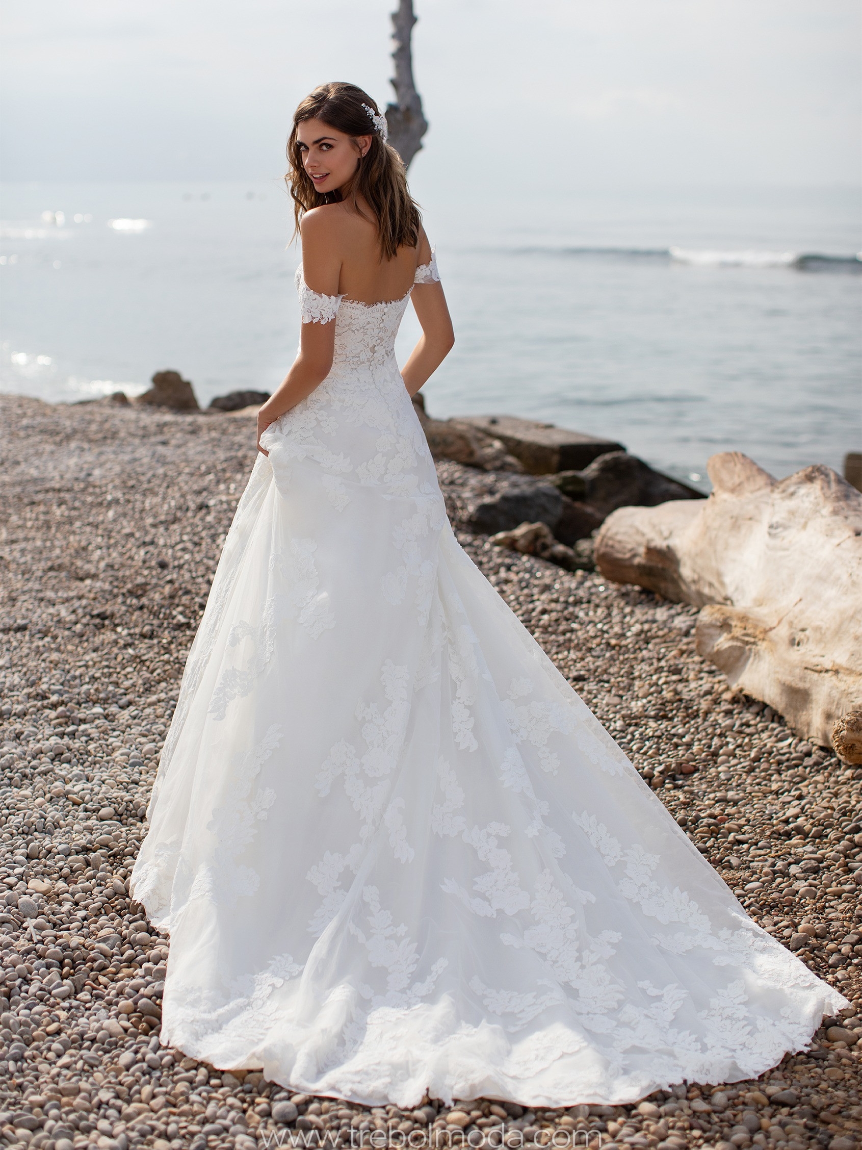 Vestido estilo princesa con escote de corazón y manguitos de encaje (posibilidad de desmontar).