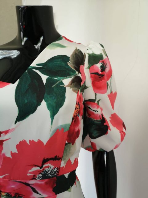 Confeccionado en tejido de organza con aplicaciones de encaje.