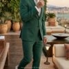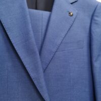Ideal por su chaqueta entallada y con dos botones en solapa.
