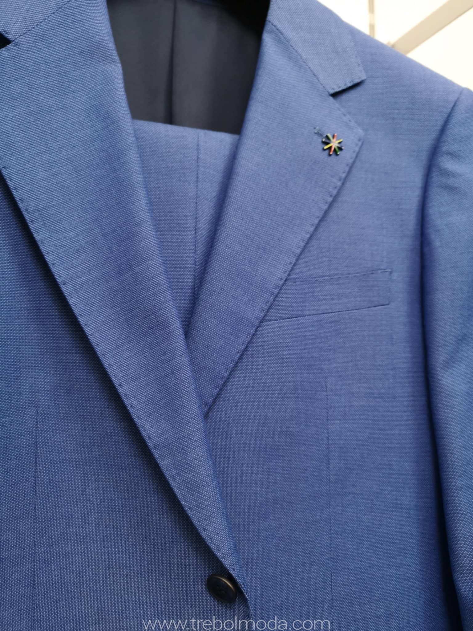 Ideal por su chaqueta entallada y con dos botones en solapa.