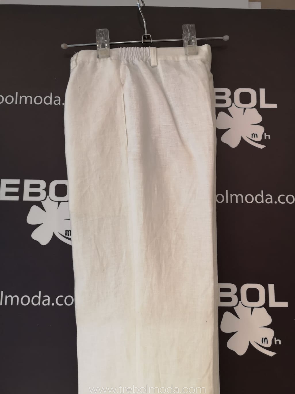 Pantalón en el mismo tono. Forrado para evitar transparencias. Diseño perneras rectas. Cintura con goma elastica en los laterales.Composición 100% lino.