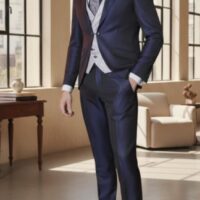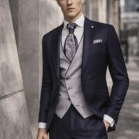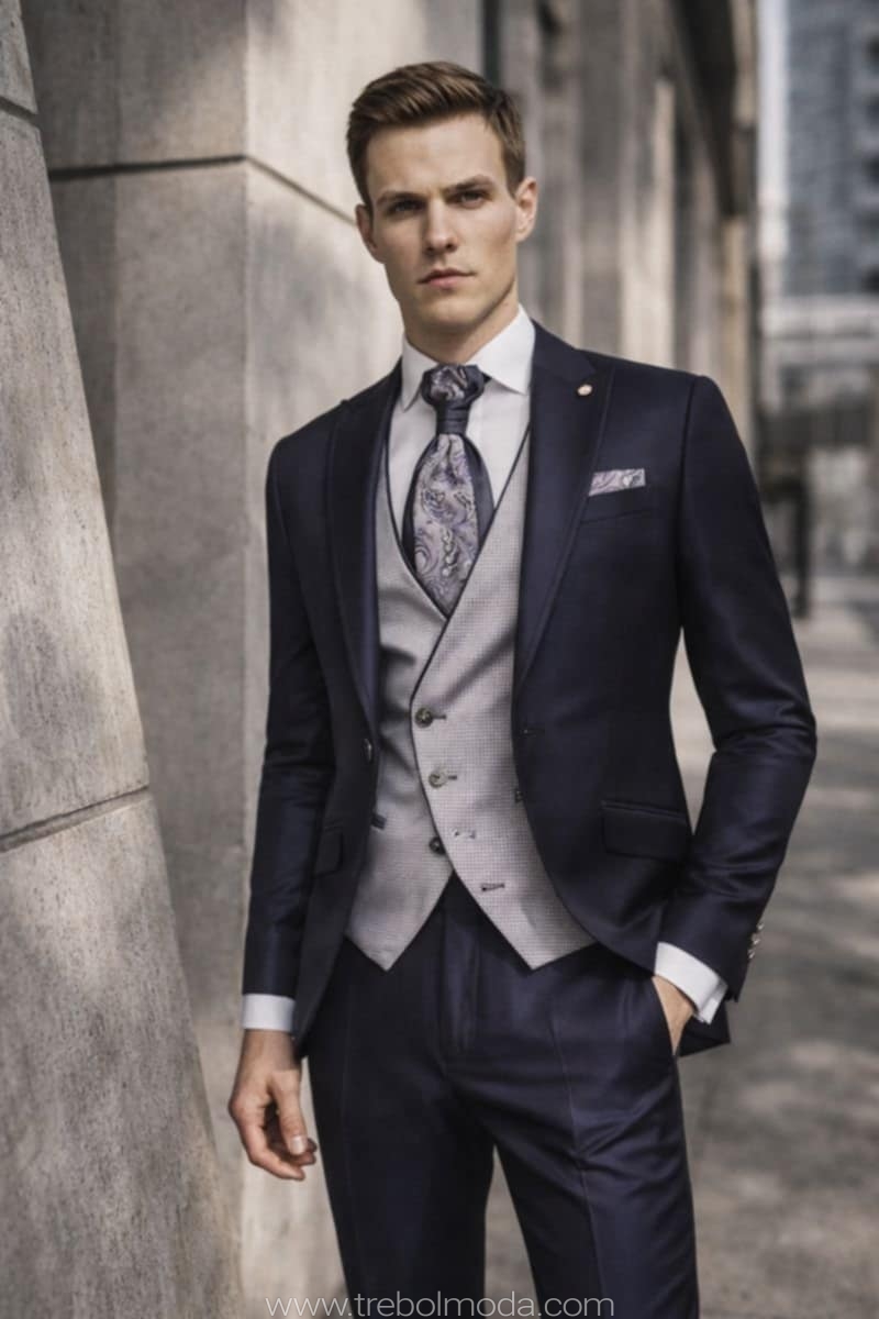 Chaleco en contraste tono plateado coordinado con el palastrón.