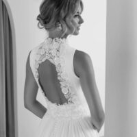 Vestido de novia con cuello halter.