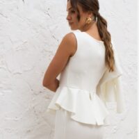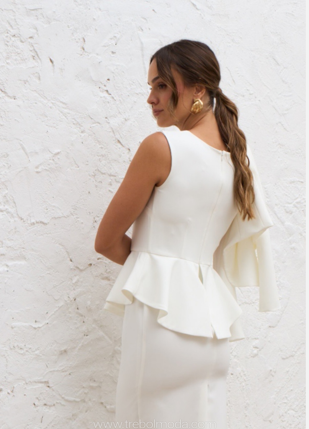 Muy versátil este conjunto de vestido blanco con chaquetita (desmontable).