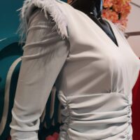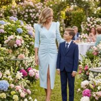 Vestido celeste con plumas