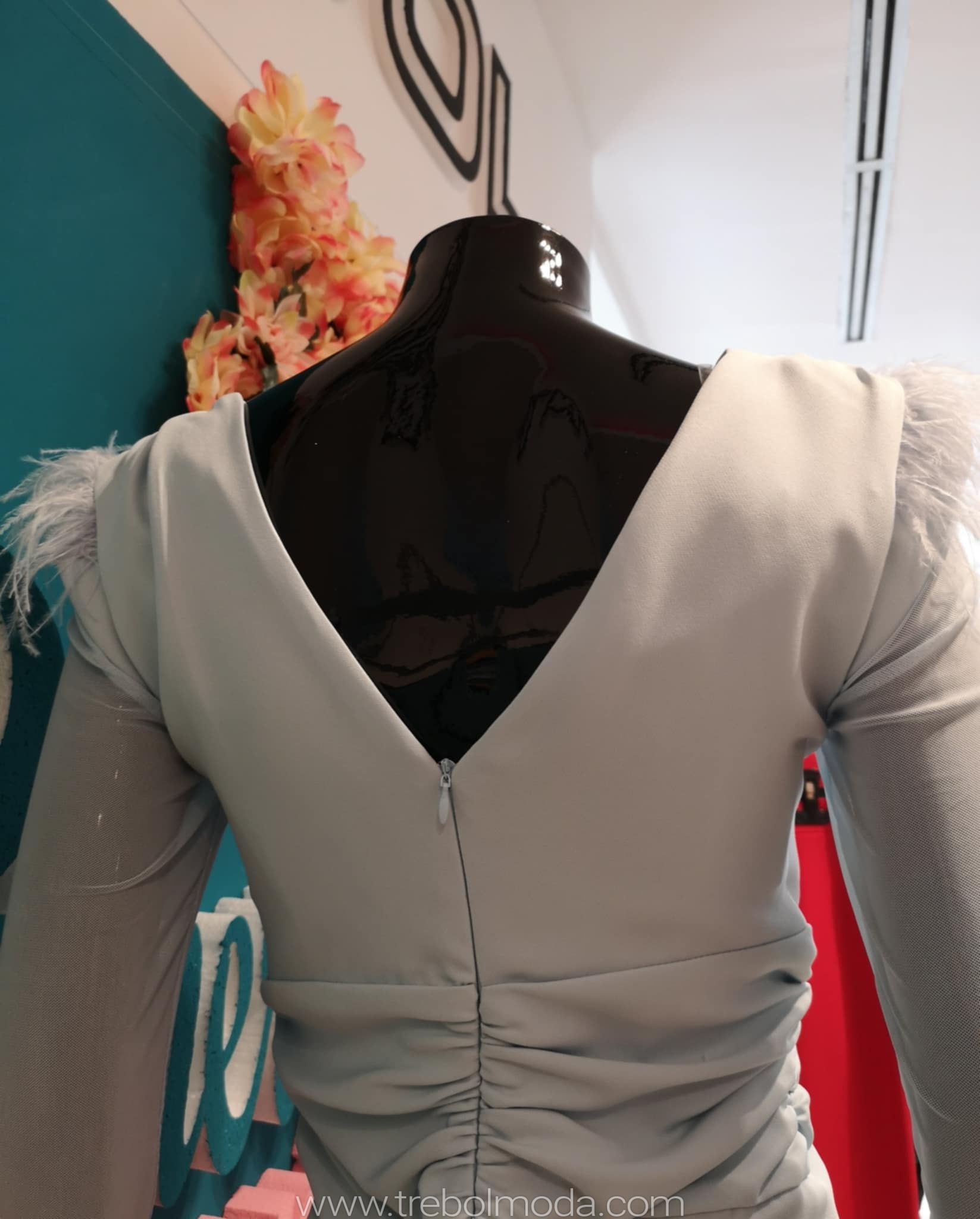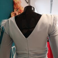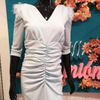 Vestido celeste con plumas