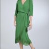 Mangas globo y escote cruzado.