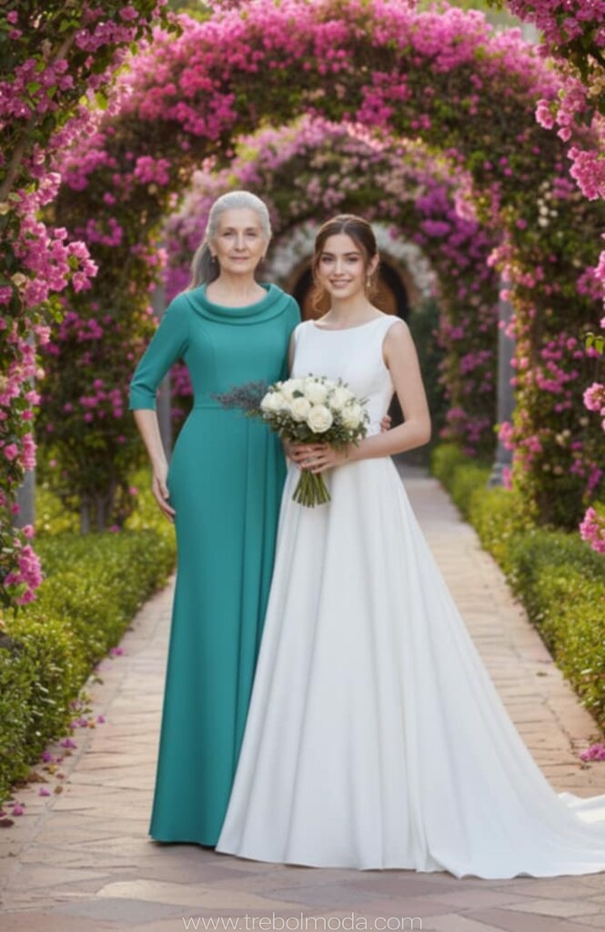 Este vestido largo combina encaje y elegancia, con un cuerpo en encaje y una falda de suave caída evasee.. Ideal para madrinas que buscan un diseño romántico.