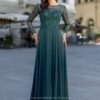 Este vestido fluido con mangas de guipur es ideal para madrinas que buscan una combinación de sofisticación y movimiento. Las capas en la falda crean un efecto visual impactante, mientras que el escote transparente añade elegancia. Las capas, muy de moda esta temporada, aportan un toque actual y permiten un movimiento fluido.