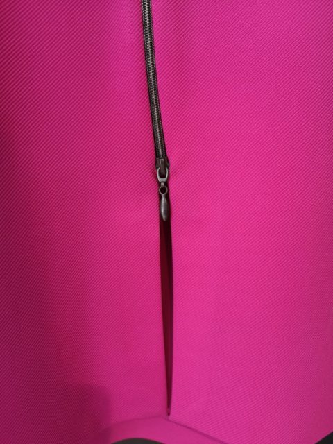 Escote delantero con transparencias (incluye retal para evitarlo) y espalda cerrada con cremallera invisible.