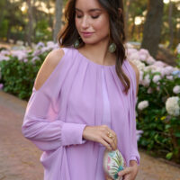 Su diseño de hombros al descubierto y sus mangas murciélago lo hacen único.