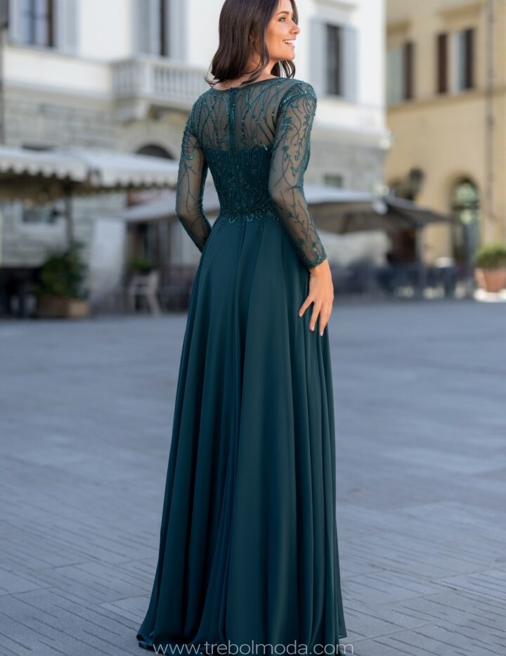 Vestido con mangas y espalda de pedrería
