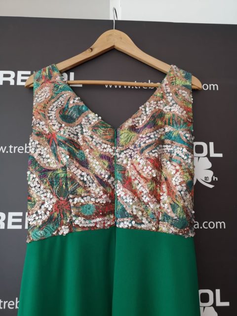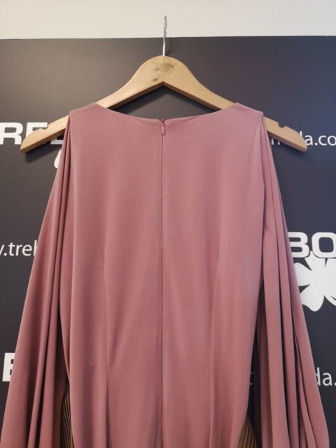 Nos parece todo un acierto sus manguitas de tul transparentes que se dejan caer hasta el codo.