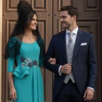 Este diseño, confeccionado en un sofisticado tono turquesa, destaca por su corte ajustado que realza la figura, junto con delicados bordados florales en el torso.