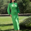 Un diseño muy favorecedor por sus volantes en los hombros, su escote en pico (delantero y espalda) y su corte imperio.