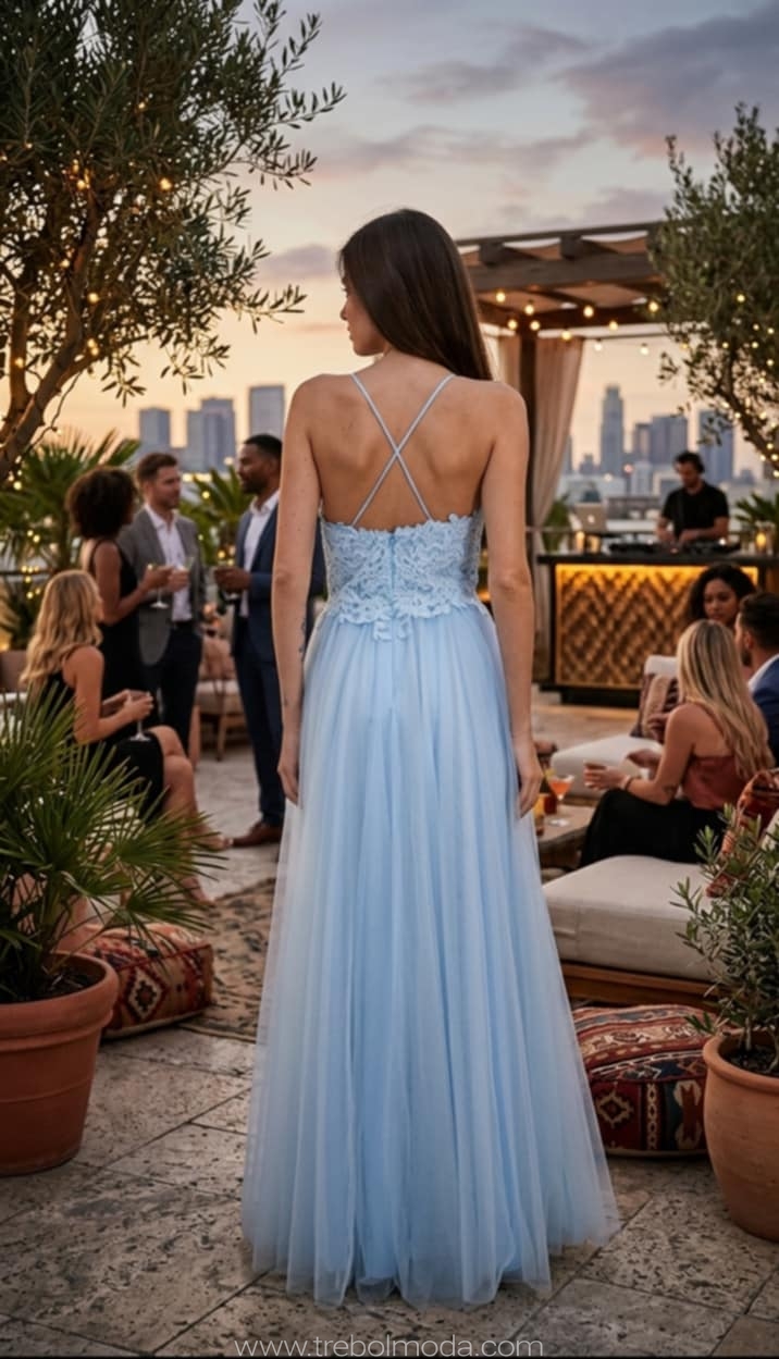 Espalda con tirantes spaguettis cruzados.