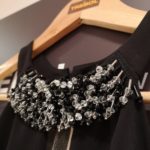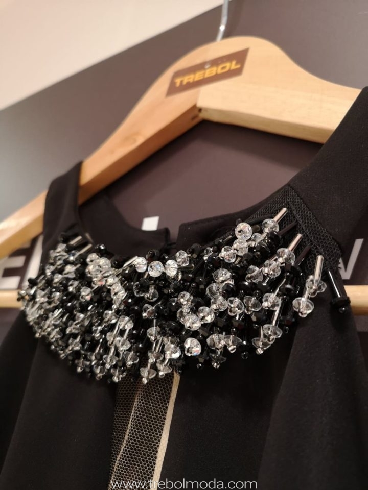 Espalda con abertura cerrada en botón y cremallera invisible. Composición 97% Poliester y 3% elastan.