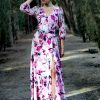 Vestido midi estampado “pata de gallo” en falda y cuerpo monocolor buganvilla.