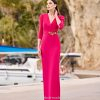 Este vestido fluido con capas de gasa es ideal para madrinas que buscan una combinación de sofisticación y movimiento crean un efecto visual impactante, mientras que el escote en V añade elegancia. Las capas, muy de moda esta temporada, aportan un toque actual y permiten un movimiento fluido.